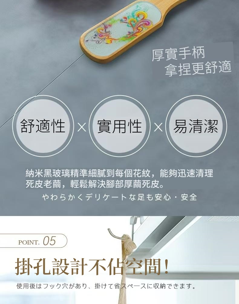 ·納米玻璃磨腳器——光滑的玻璃表面,寬闊便於打磨。