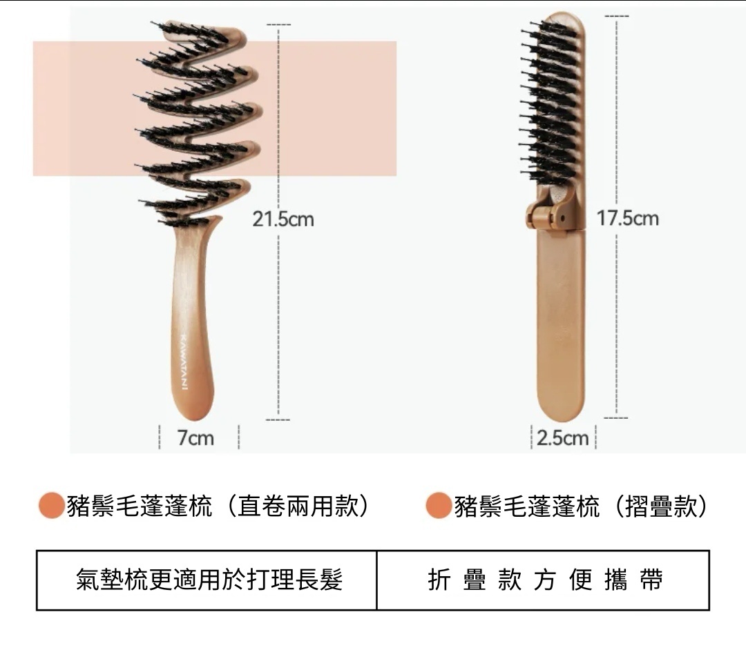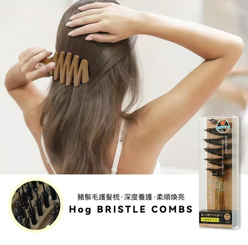 日本撫平毛躁均衡油脂卷直兩用豬鬃毛蓬蓬梳(2款可選)|KAWATANI