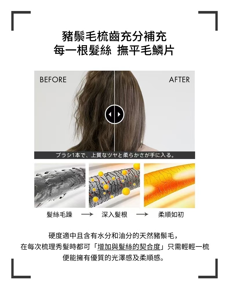 豬鬃毛護發梳·深度養護·柔順煥亮