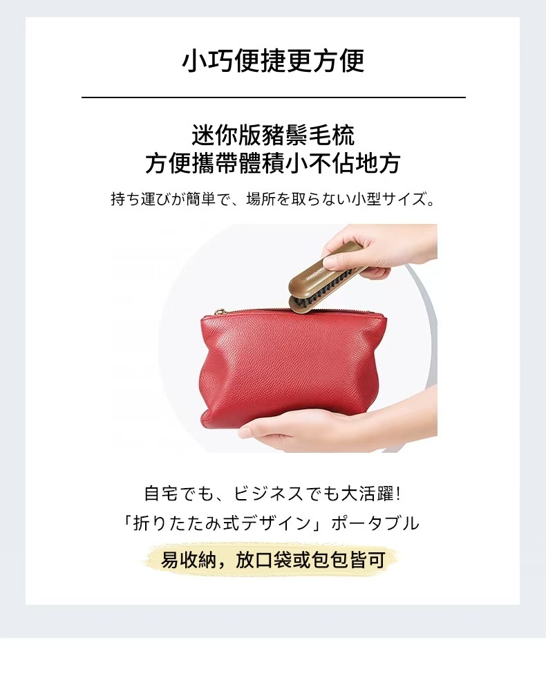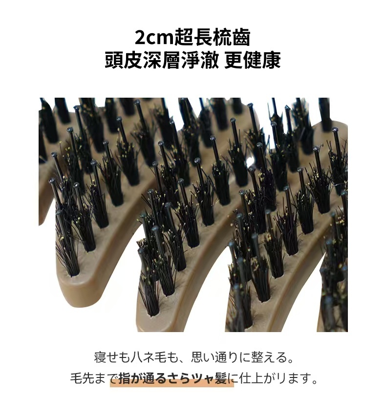 日本撫平毛躁均衡油脂卷直兩用豬鬃毛蓬蓬梳