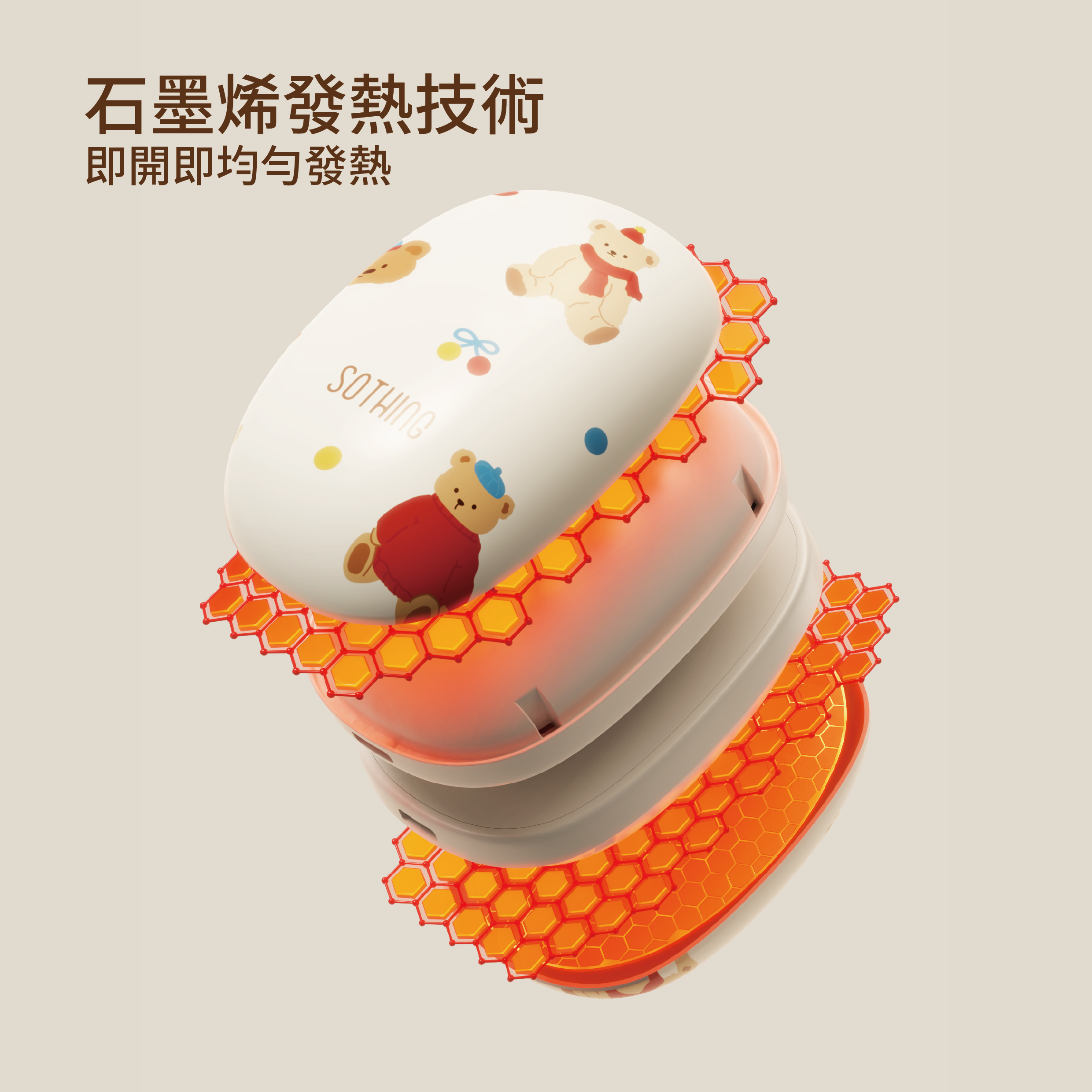石墨烯發熱均勻暖透掌心,叮噹熊款式可愛時尚。