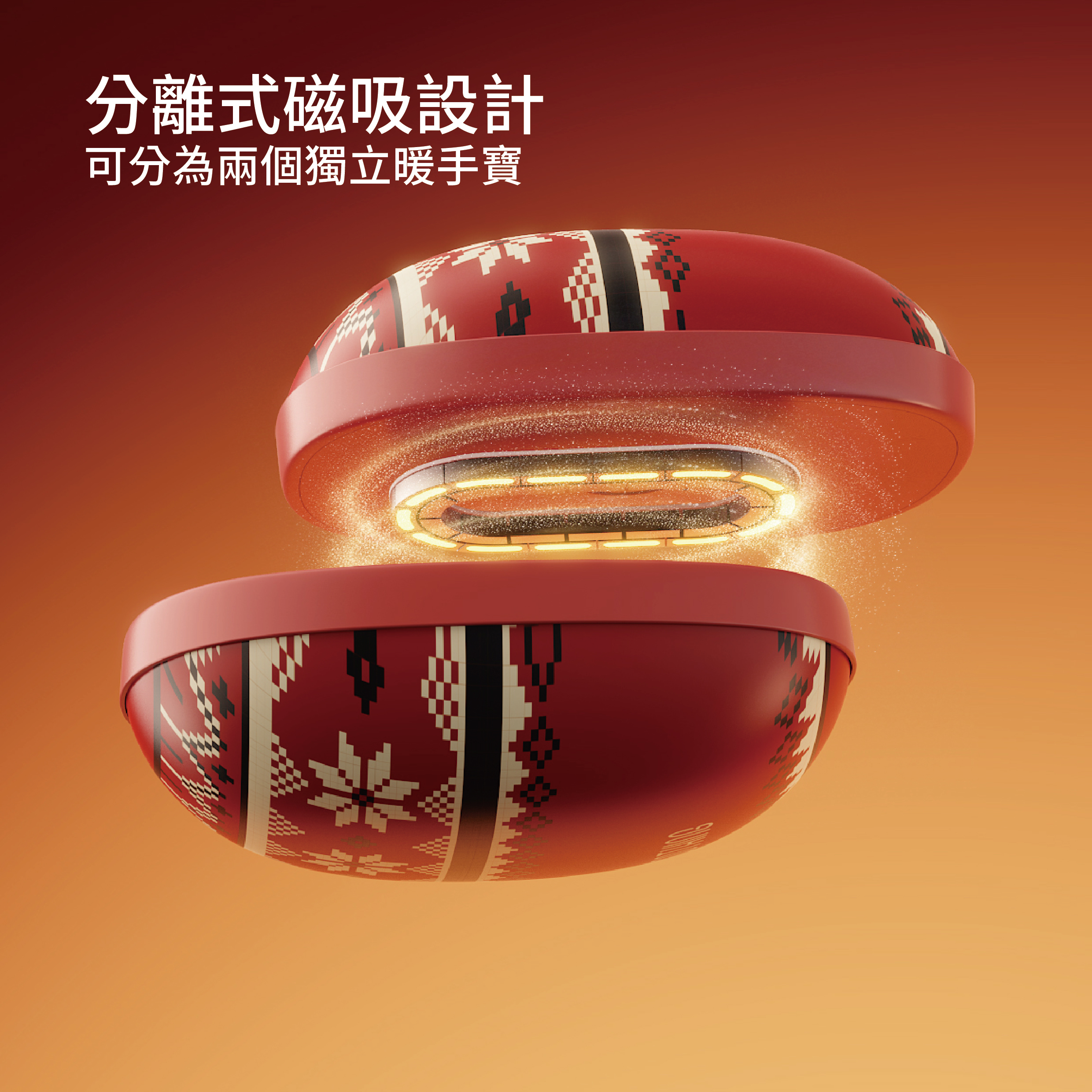 1.分離式磁吸設計,可分為兩個獨立機體,同時與他人分享暖手功能。