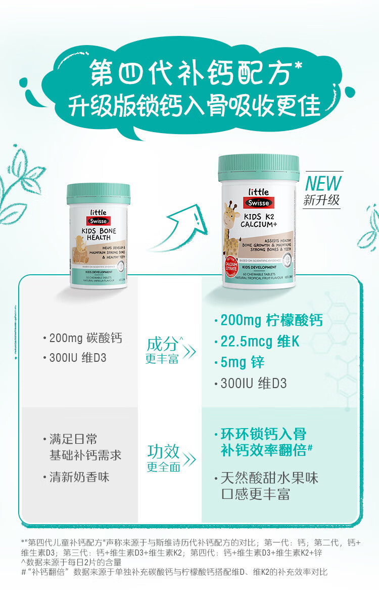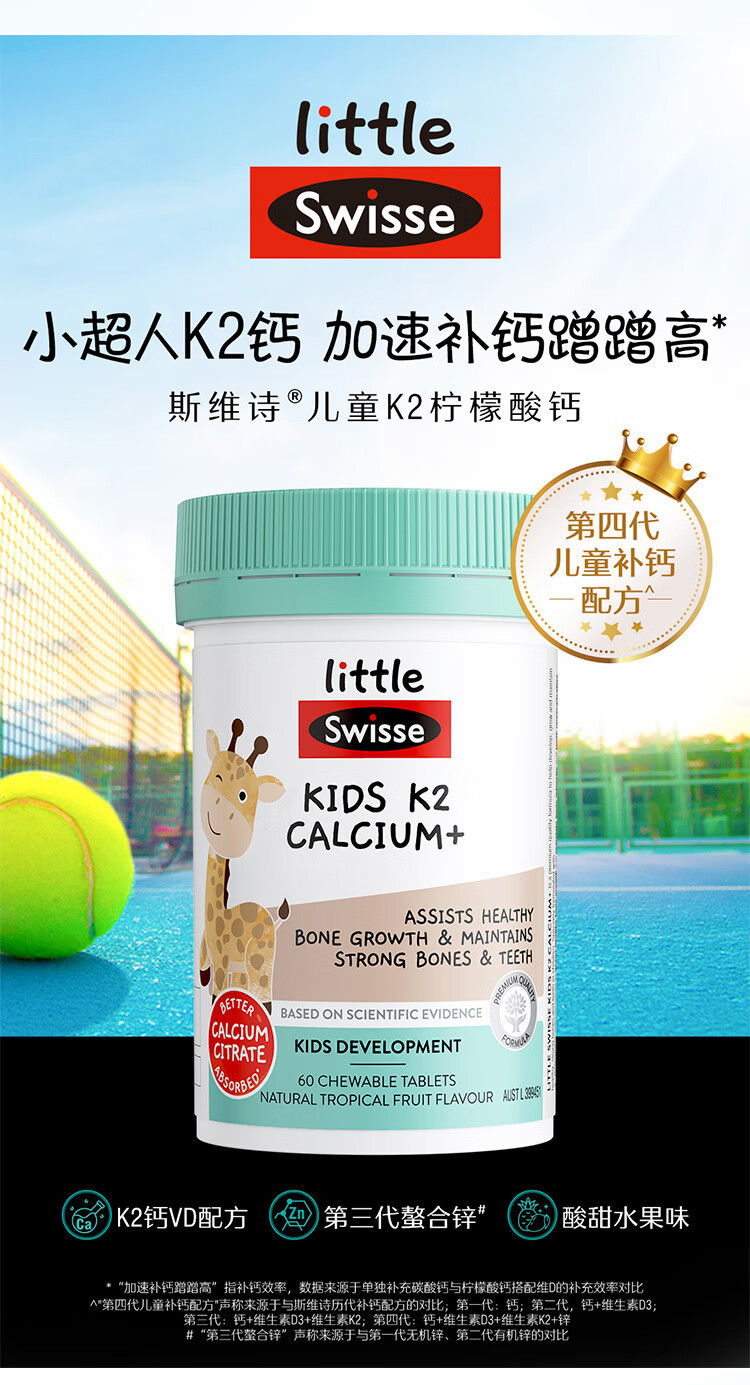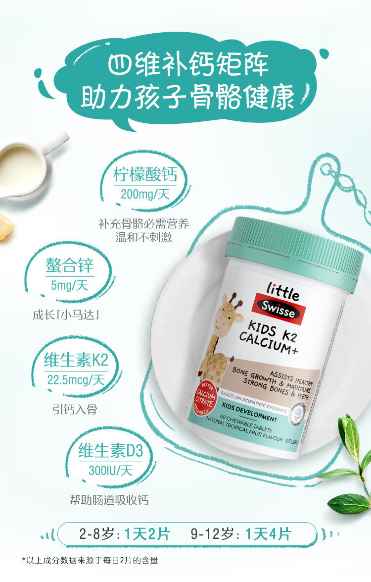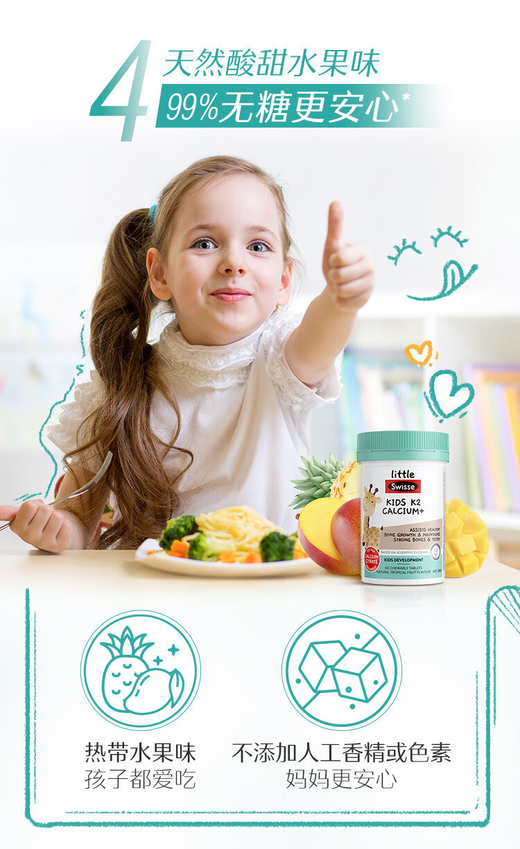 『快閃』成長必備 兒童 K2 檸檬酸鈣咀嚼片 60粒|澳洲 Swisse KIDS K2 Calcium+|搵好西