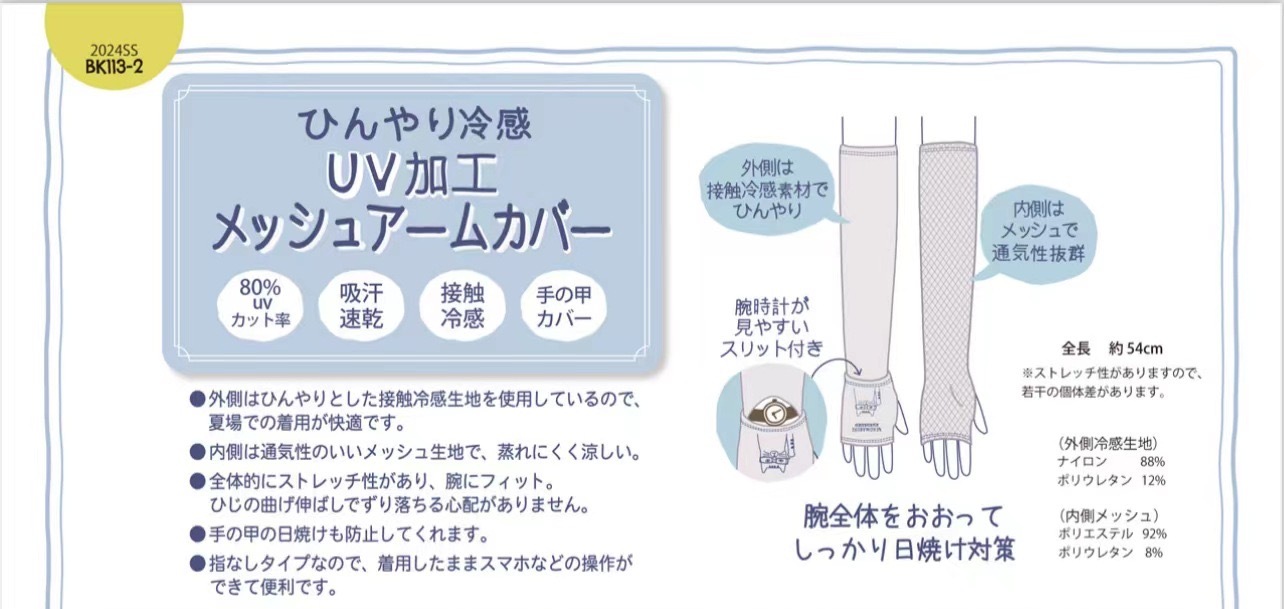 『快閃』日本Kusuguru 抗UV冷感防曬手袖(6款可選)|24-BK113-2