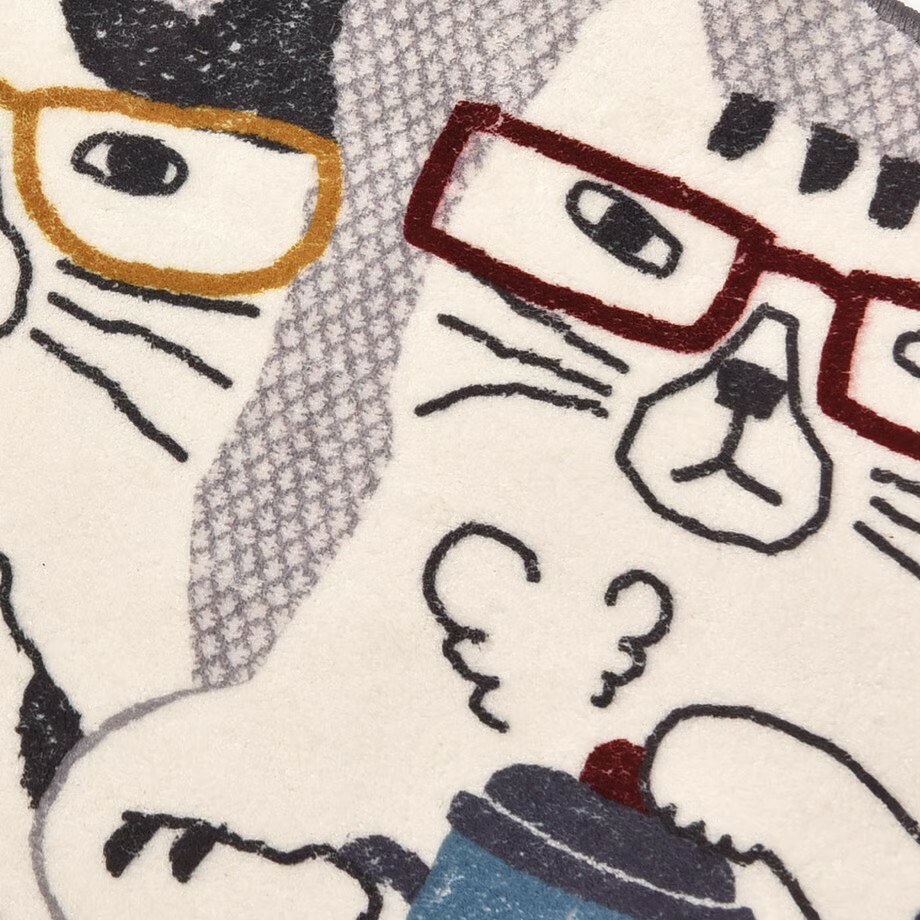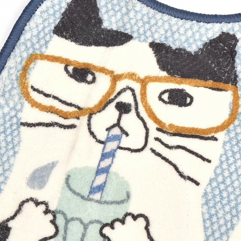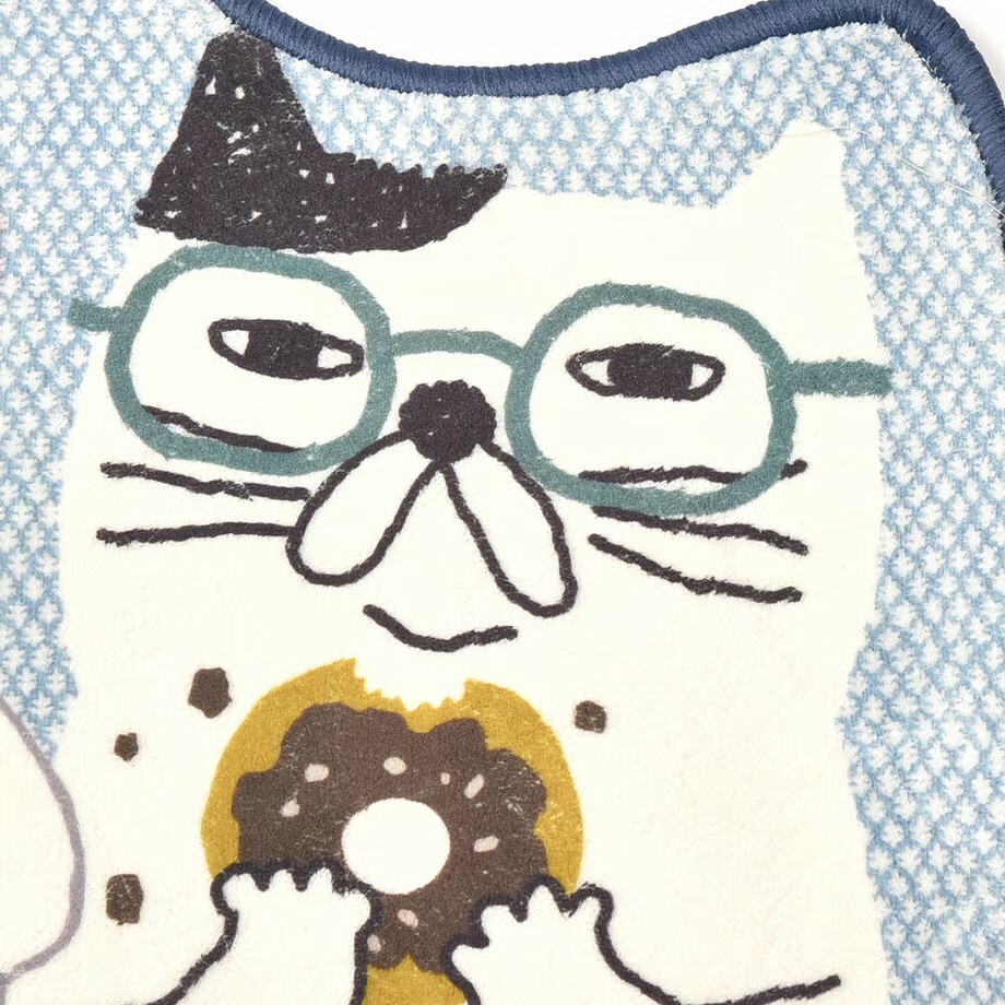 這張墊子描繪的是一群貓咪在舒適的咖啡館裡度過的時光。