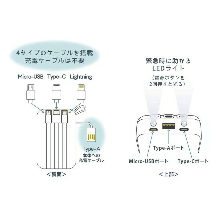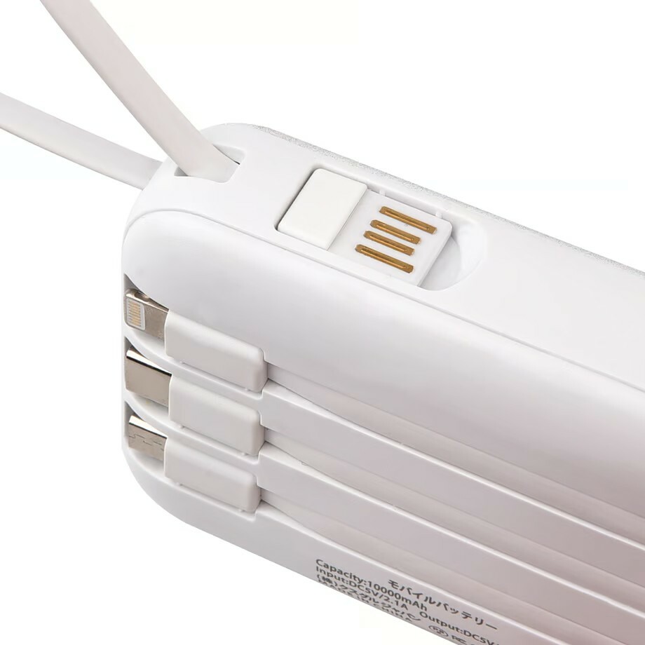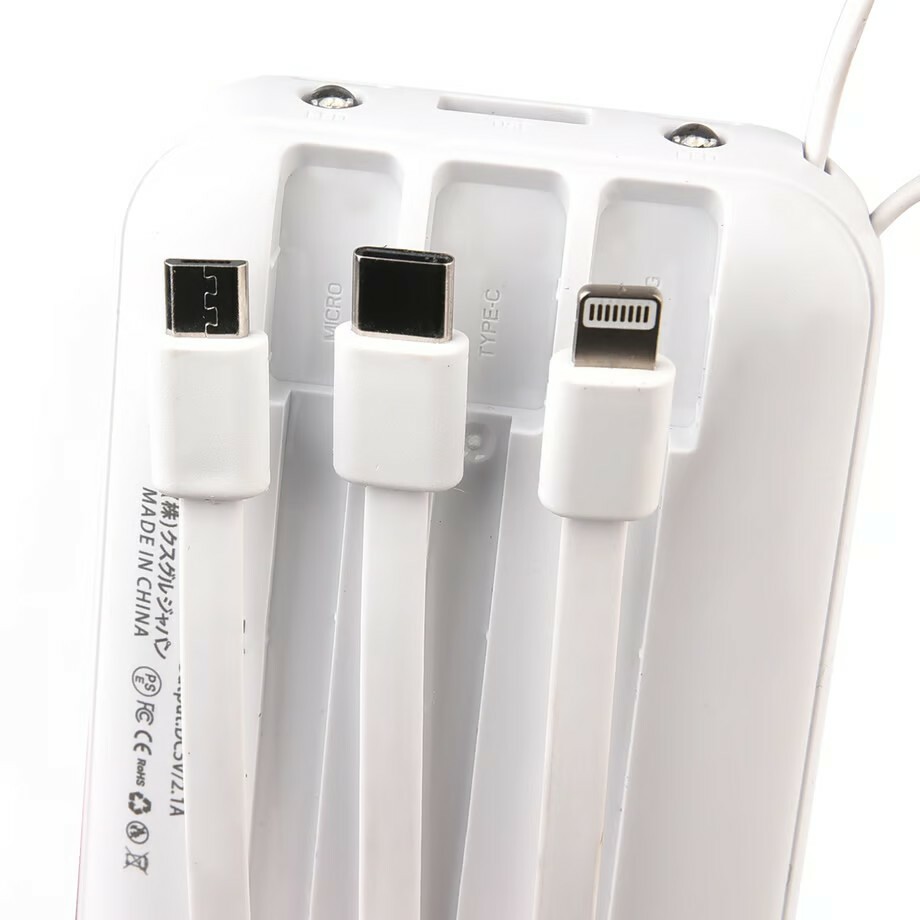 ●配備Micro-USB、Type-C和Lightning輸出線以及Type-A輸入線,即使沒有充電線也可以智慧充電。
