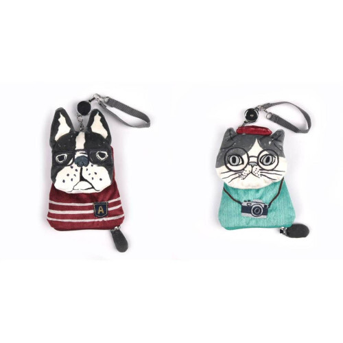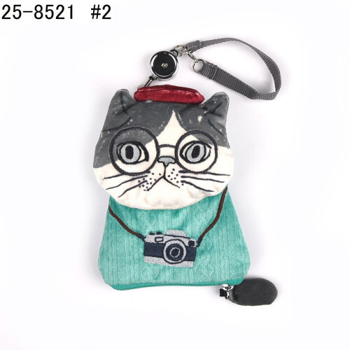 『快閃』日本Kusuguru 刺繡貓咪 露西保羅 伸縮扣零錢包卡包(兩款可選)|25-8521