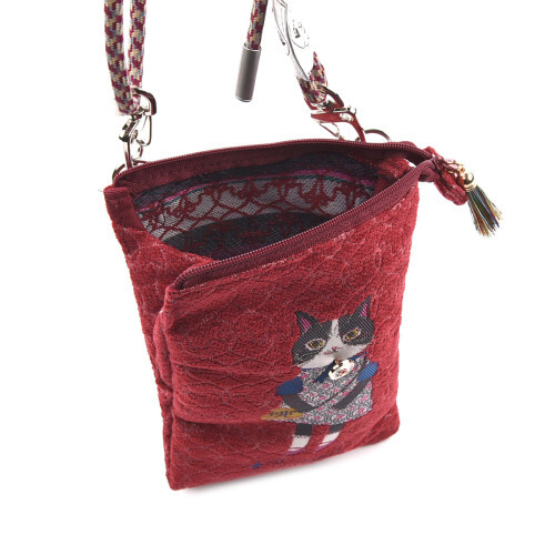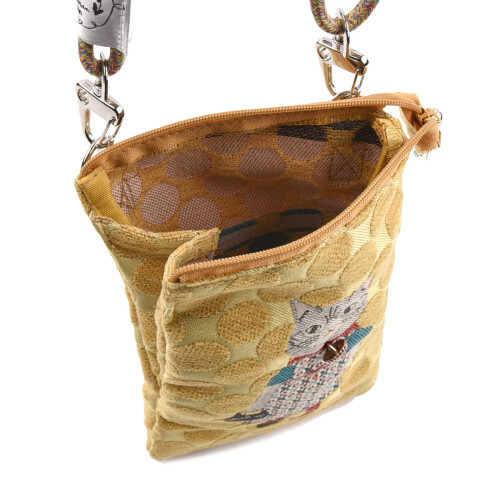 『快閃』日本Kusuguru 貓咪圖案 蜜豆公主 提花布藝手機包(三款可選)|25-8617