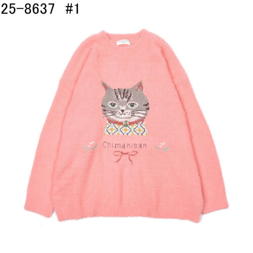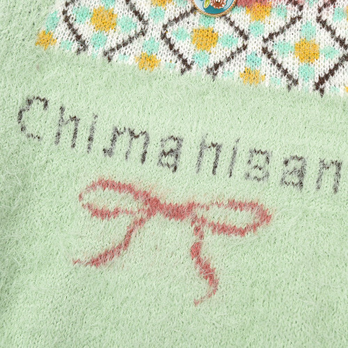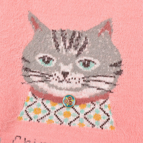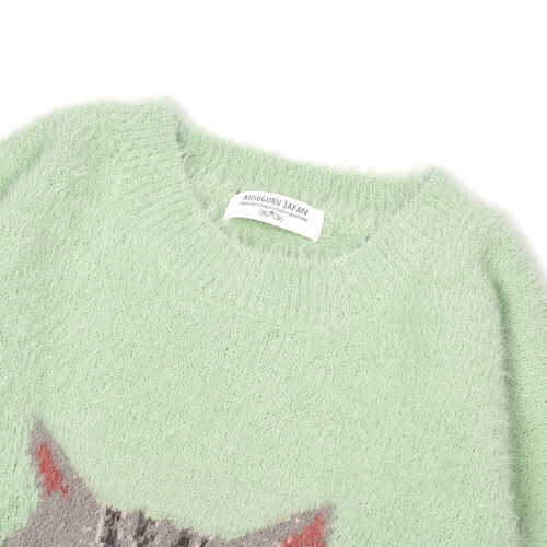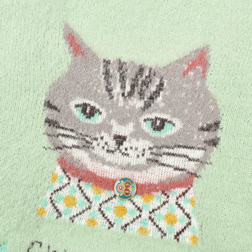 (現貨笋價清出)日本Kusuguru 貓咪蜜豆粽子提花針織圓領毛衣
