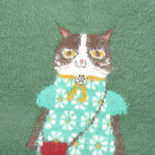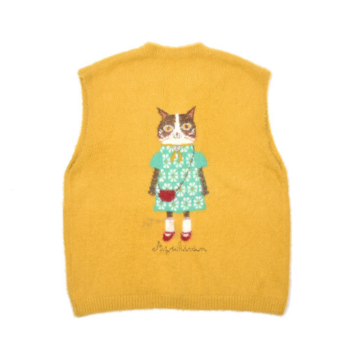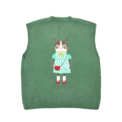 『快閃』日本Kusuguru 貓咪小豆小姐毛絨針織開襟背心(兩款可選)|25-8639