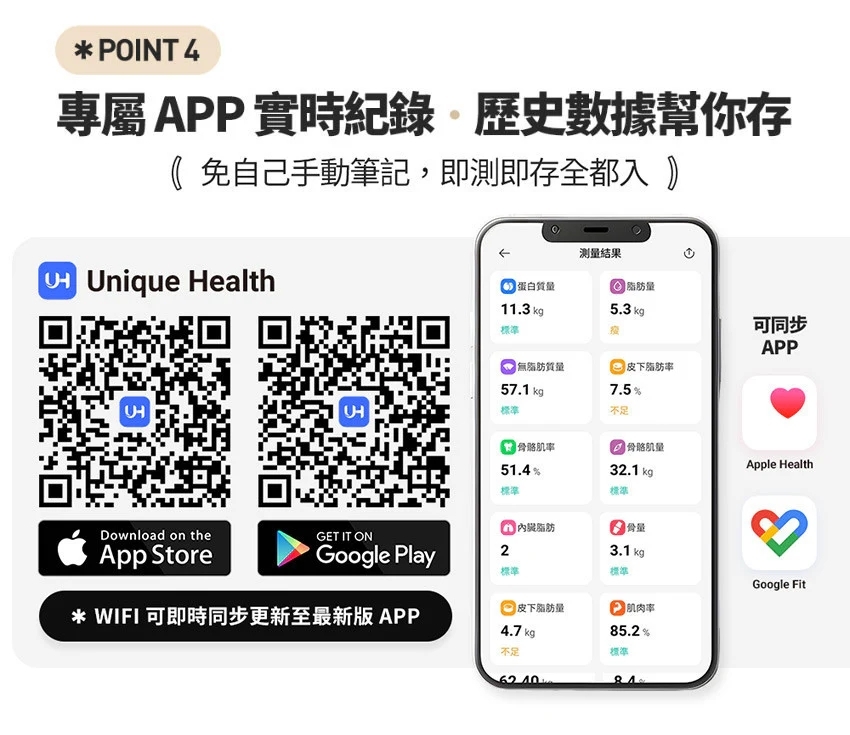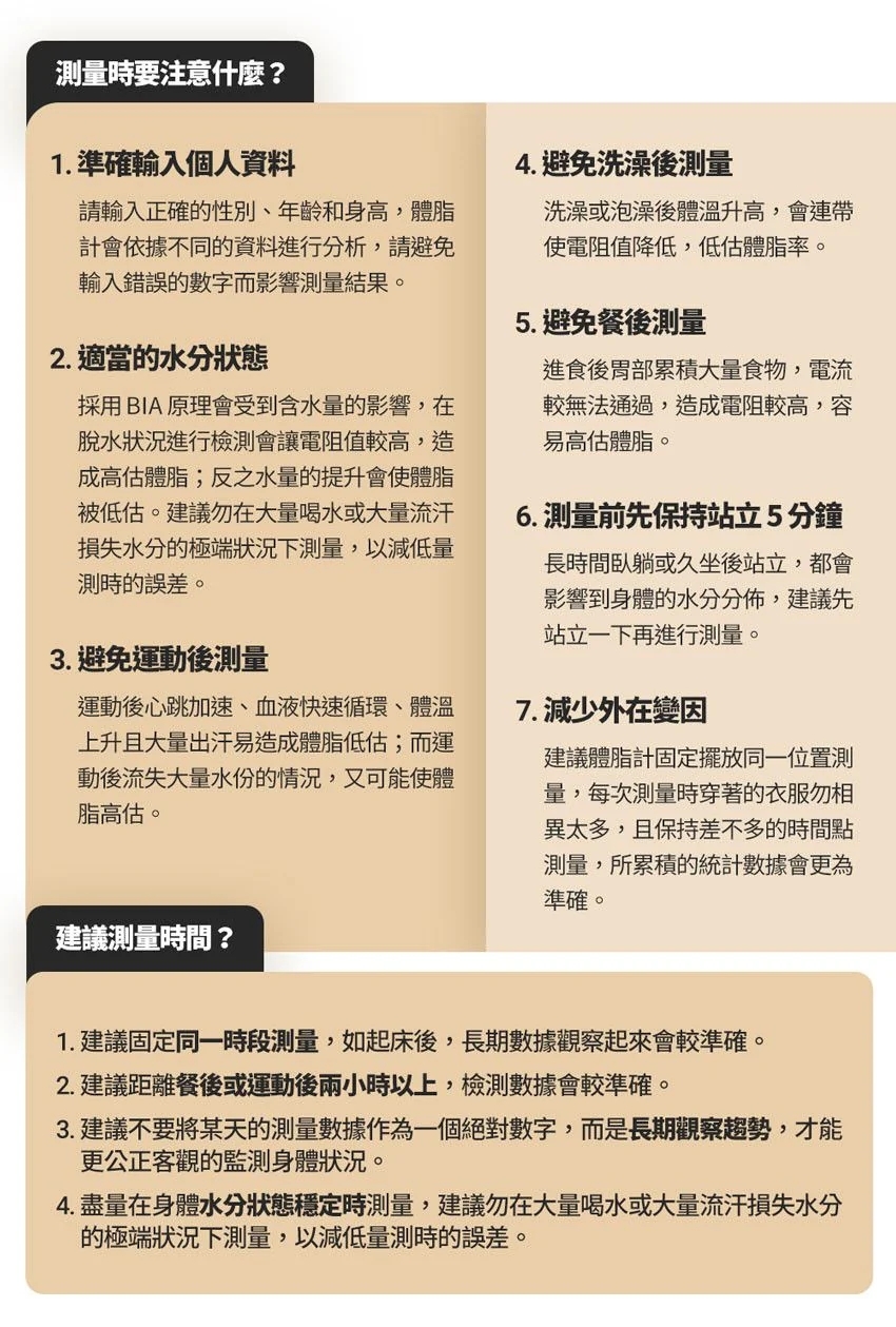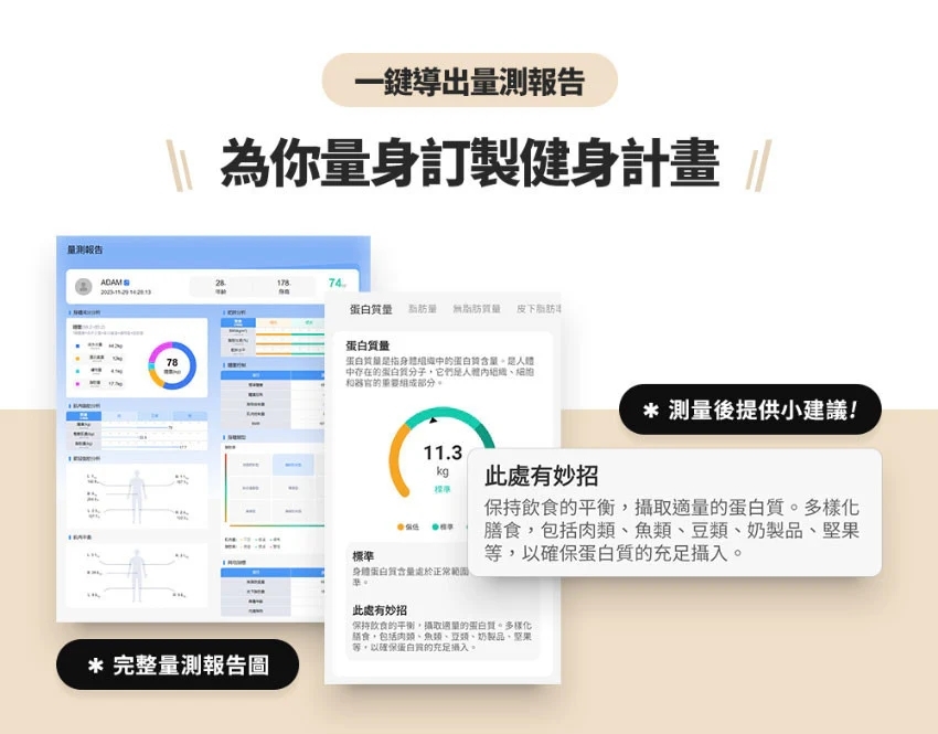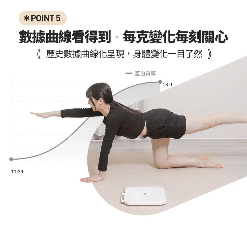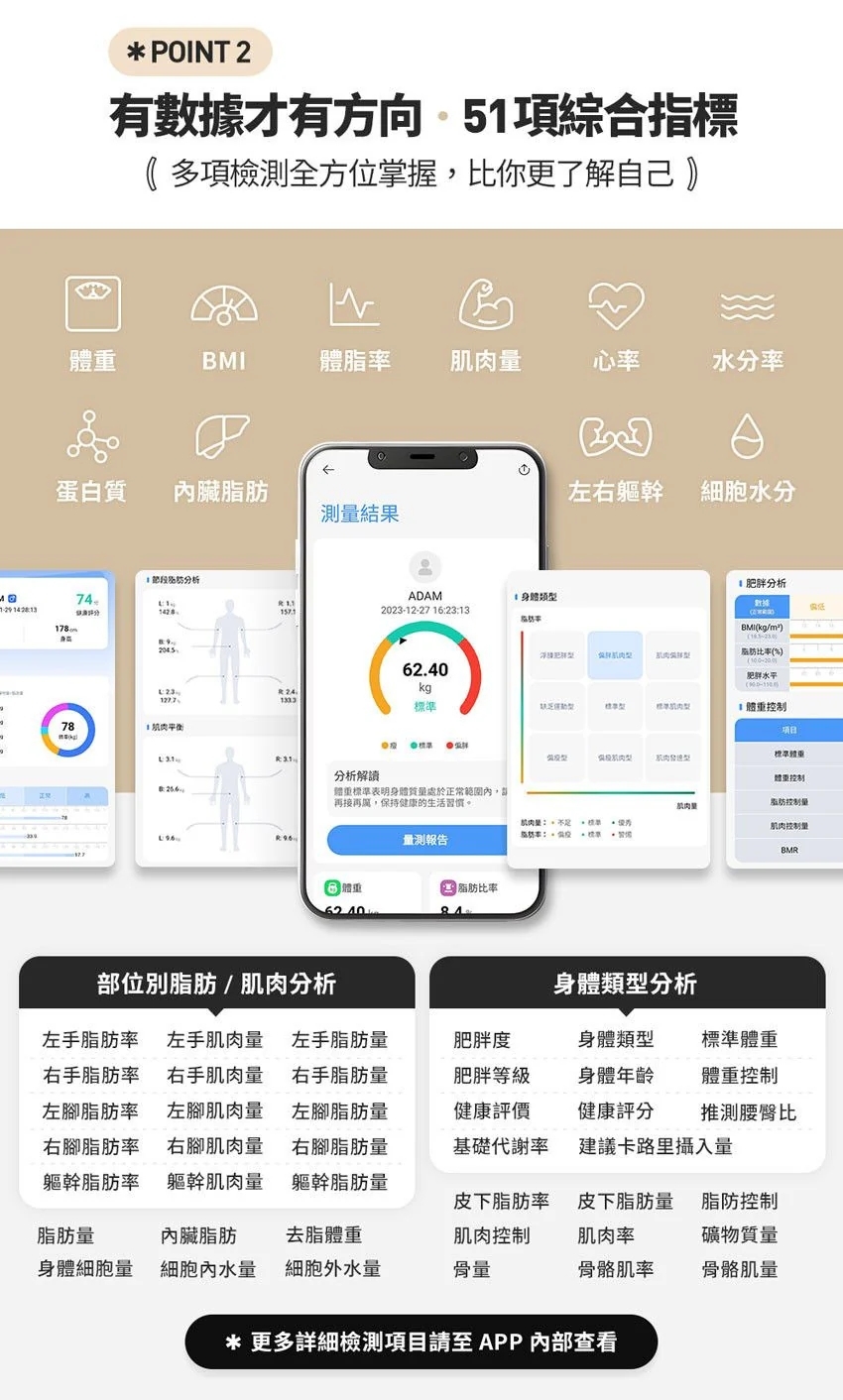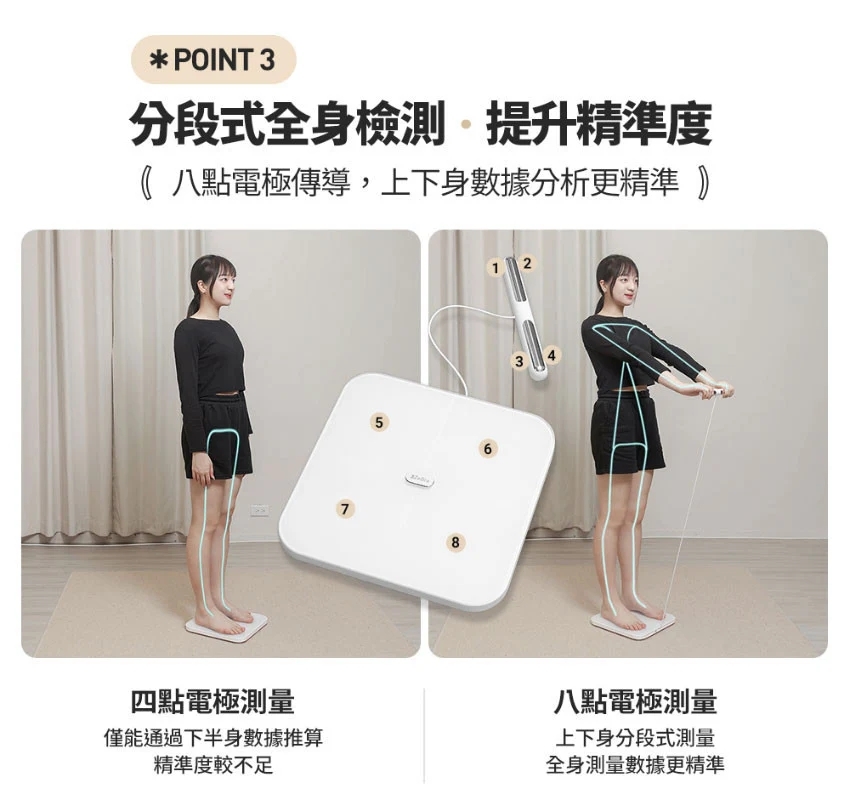 可以上下身分段式測量,獲得更精準的身體數據,避免因數據錯誤而訂立錯誤的健身計劃。