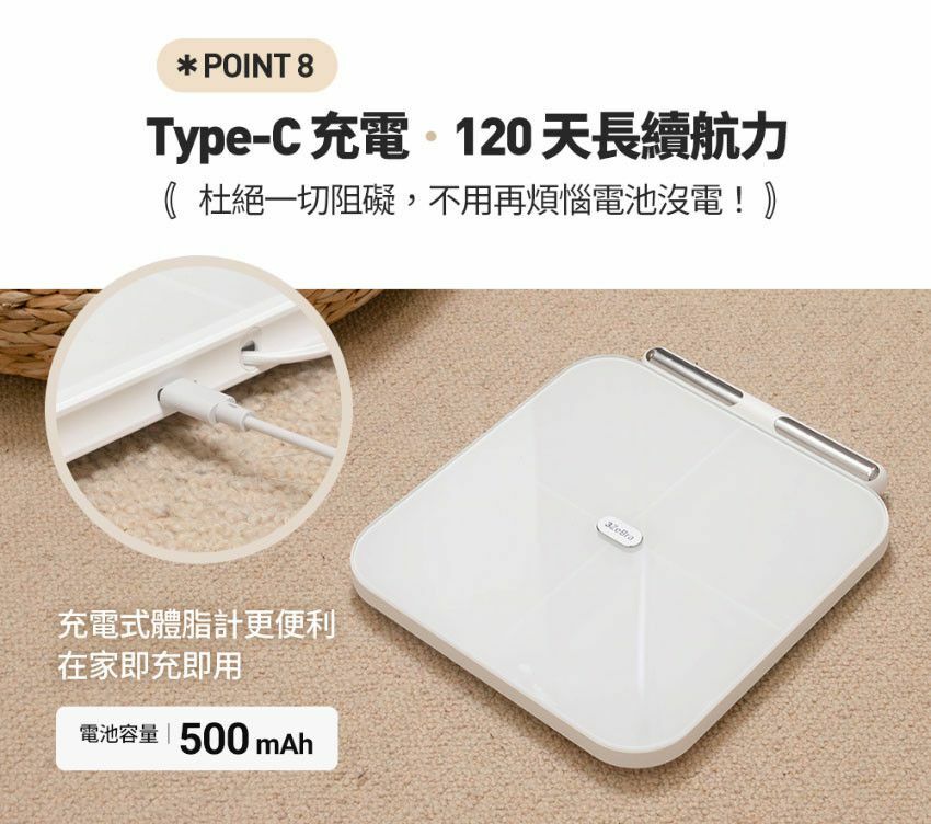 . Type-C 充電式設計,即充即用免煩惱家裡沒電池