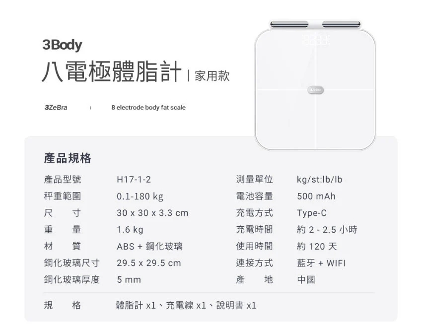 3Body 八電極體脂磅 (家用款) |台灣 3ZeBra|搵好西