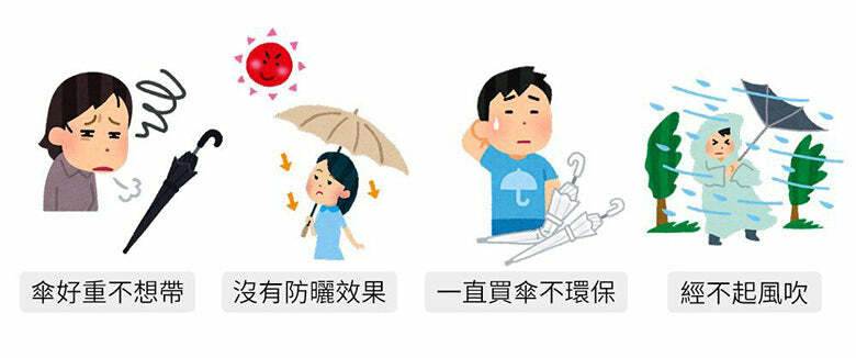 相比市面上一般雨傘重量約310至400g。