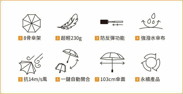 二、230g 超輕重量,最輕盈8骨自動傘