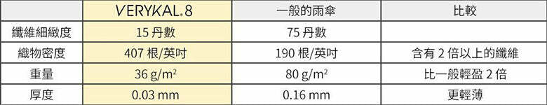 VERYKAL 8 的骨架由六骨增加到八骨之後,結構上可以更耐強風,經過第三方機構測試後,可抗 14m/s 的強風,在撐傘行走時手感也會更穩。