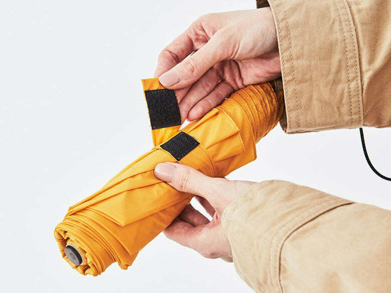 為了減輕重量,傘布選用和絲襪級別厚度的15丹數面料。應用降落傘織物的技術製作,以超細的編織線交織而成的輕薄織物,觸感非常地細緻、有韌性,在收納雨傘時也很方便。不管你怎麼收都不會亂成一團!