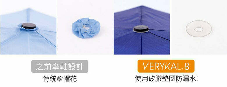 VERYKAL 8 在傘軸卡榫的部位,增加了加強固定的設計,如此一來能降低長時間使用後,變形和劣化的可能性。