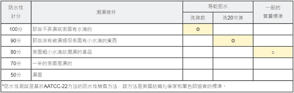 PFOA FREE(無氟)持續性強力撥水加工Easy-Dry
