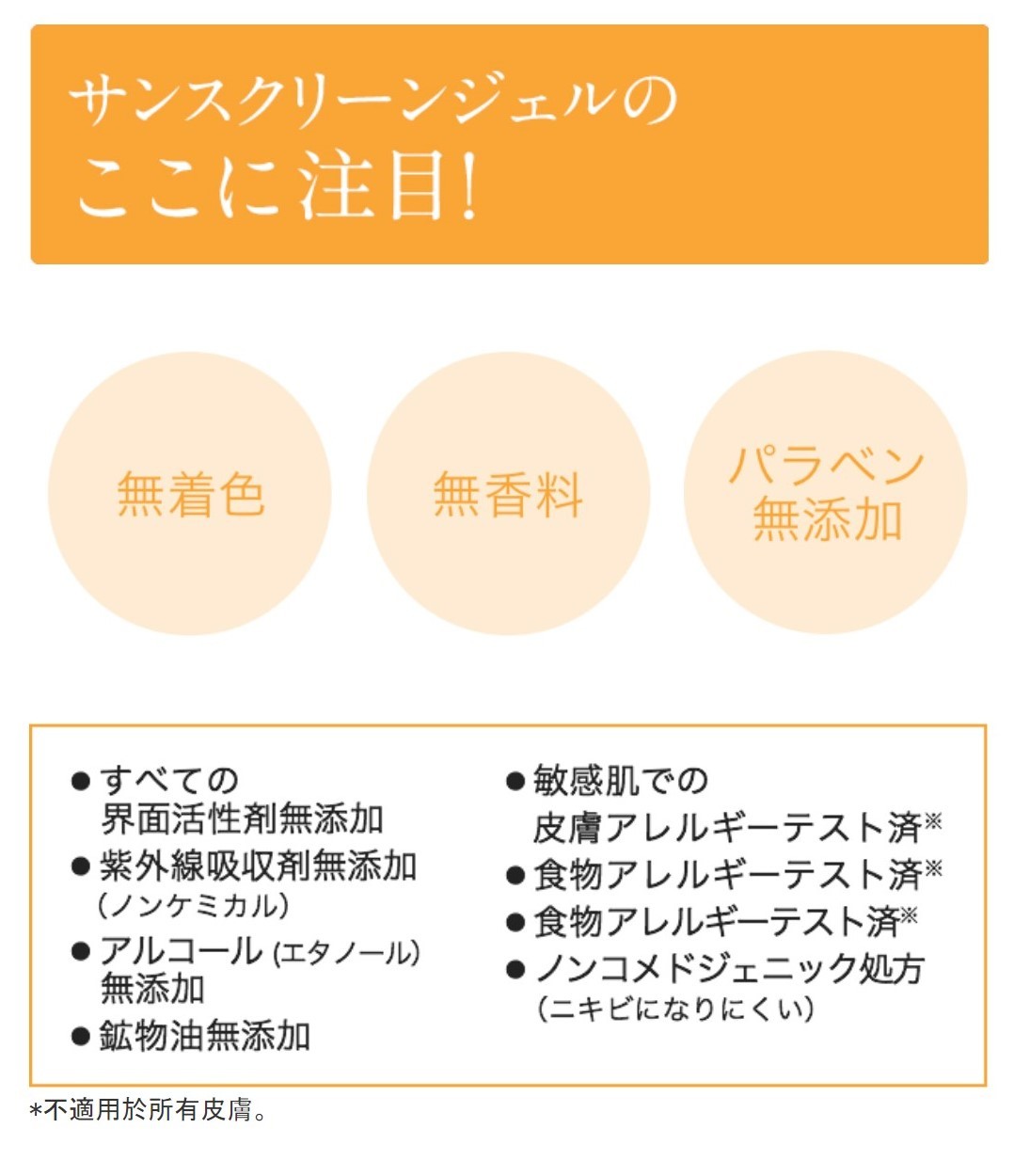 啫喱般輕柔感覺的防紫外線護理產品。防止紫外線吸收劑直接接觸肌膚。