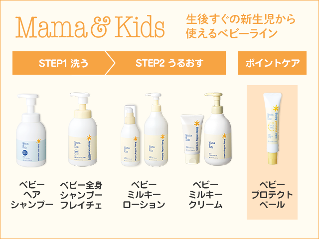 Mama & Kids是日本人氣No.1 護膚品牌。是由日本自然科學株式會社與皮膚科、產科、小兒皮膚科專家共同研究開發、專門針對孕產婦、新生兒及嬰幼兒時期的敏感嬌嫩肌膚而設計的低刺激高功能護膚用品。整個品牌產品本著無合成香精、無色素添加的原則,通過了由專家進行的品質及安全性能的測試。在產品成分方面,嚴格選擇了不但適用於敏感肌膚的原料,而且有助於促進皮膚與生俱來的滋潤能力。以從黑砂糖中提取的寡糖為中心,嚴格精選有機橄欖和黑珍珠等天然原材料,並從中萃取精華,再結合最先端的科學技術,使之可以長時間停留肌膚內部,促進肌膚的新陳代謝。產品中淡淡的黃色和甜香味均為天然寡糖所特有的顏色和香味。產品從開發研製,到製造,全部由日本自然科學株式會社管理,並且為了保證品質,目前尚未在日本以外設立分公司,也就是說產品完全為日本製造。並且考慮到安全性能以及環保問題,專門使用輕便而又不易破碎的容器,以及使用了簡易密封包裝。