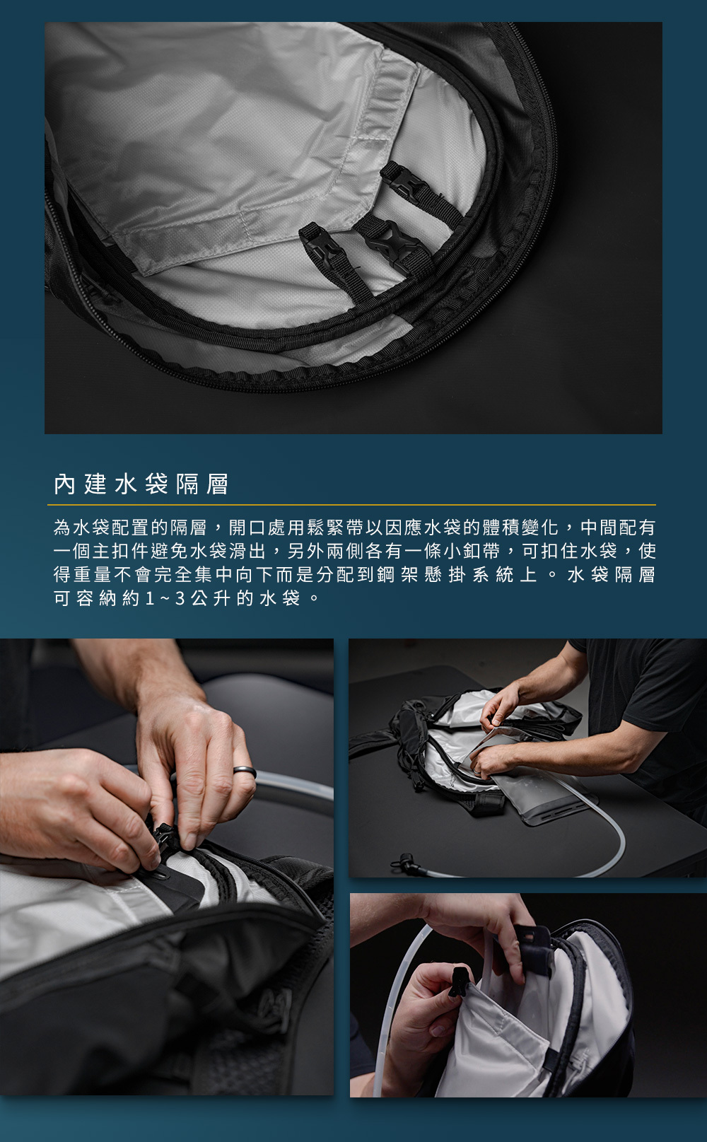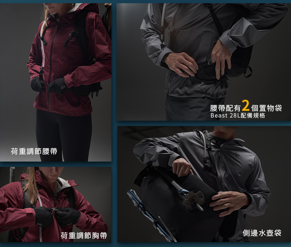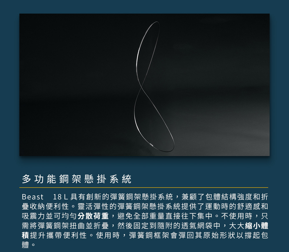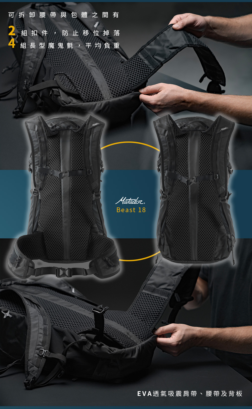 Beast18旨在與您一起移動,為您提供全天舒適的移動靈活性。靈活的框架懸掛系統將您的背包從肩膀均勻分佈到臀部,而腰部和胸骨帶則可為您的身體量身定制並支撐重物。