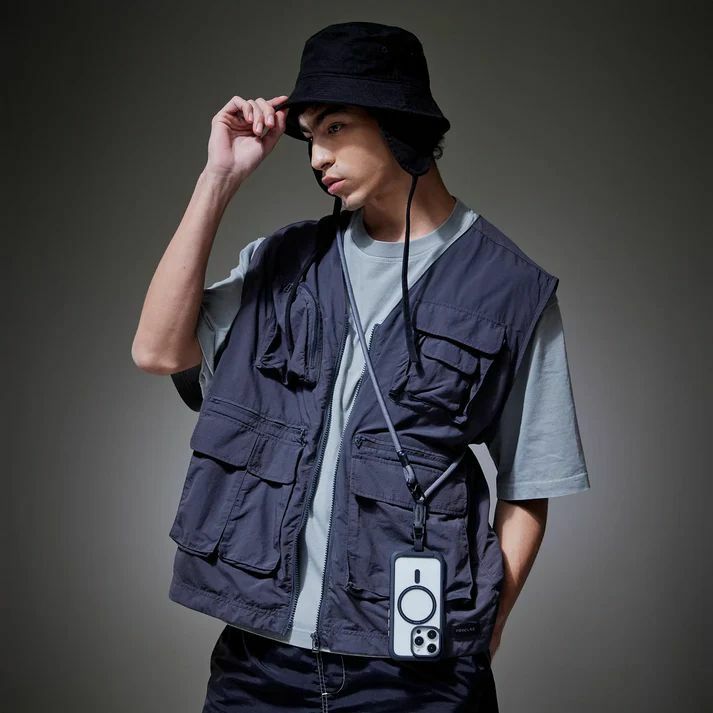 將高強度營繩作為掛繩材料,增添戶外風格與編織質感;上身輕量舒適,可拆解扣環成包袋的背帶使用