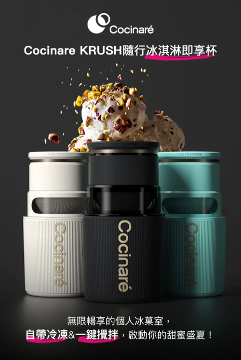 美國品牌Cocinare最近推出左一款KRUSH無線便攜DIY雪糕機,採用便攜式同無線設計,與一般傳統雪糕機不同。KRUSH小巧輕便,設計時尚,容易清洗,收藏方便,可以隨時隨地在家中或者戶外使用。同埋只需要15 - 20分鐘同3個步驟就可以輕易自製雪糕🍨或沙冰🍧。機身仲有一個透明窗口位,可以望住雪糕製作過程,好玩又好味!