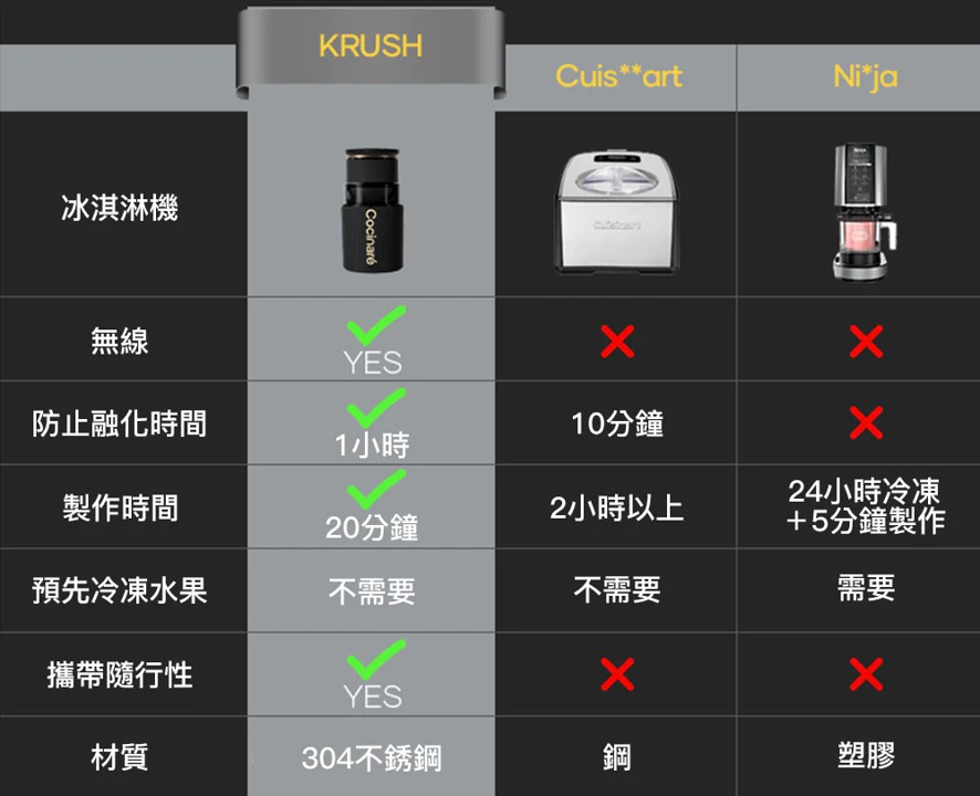 美國Cocinare Krush 無線便攜DIY雪糕機|一年保養