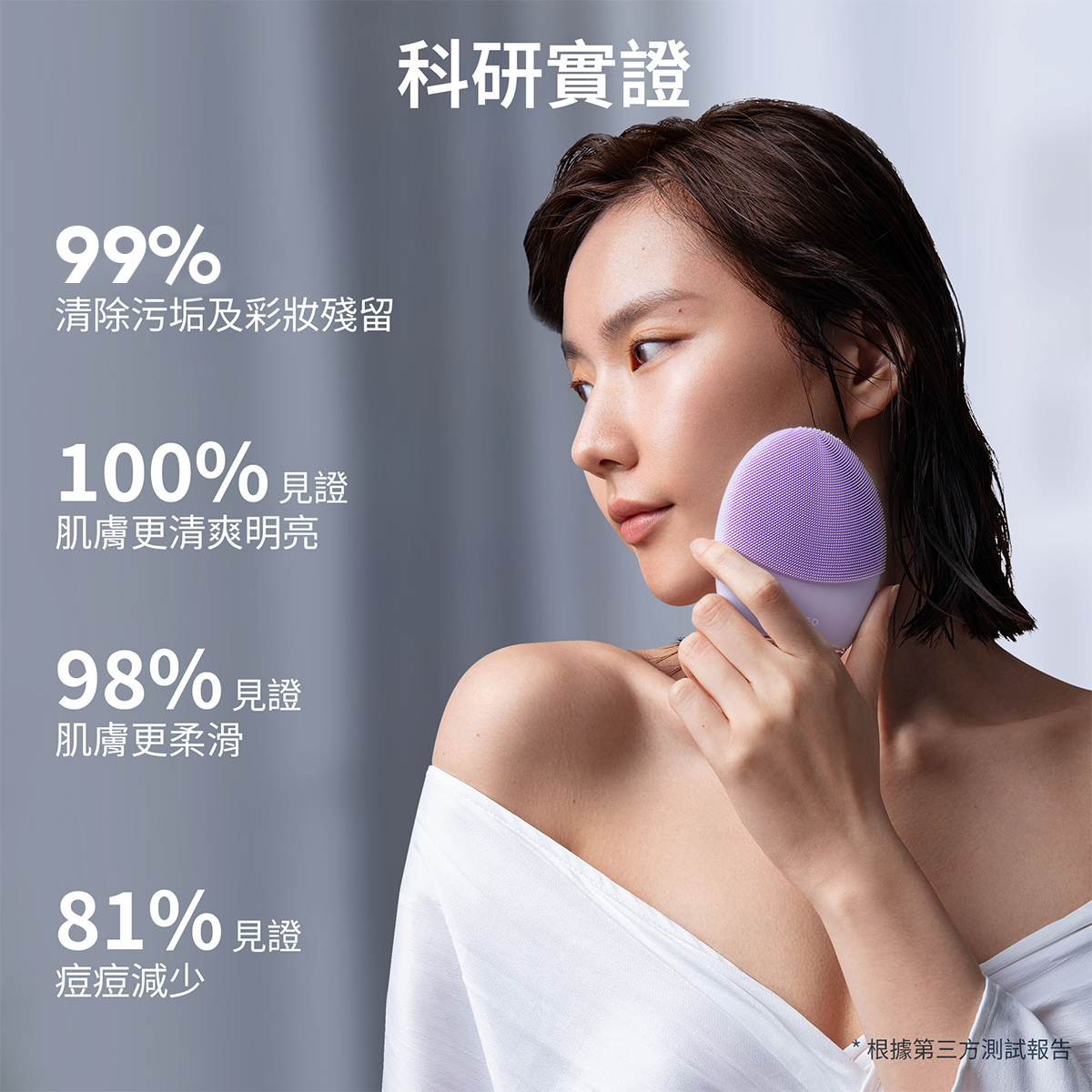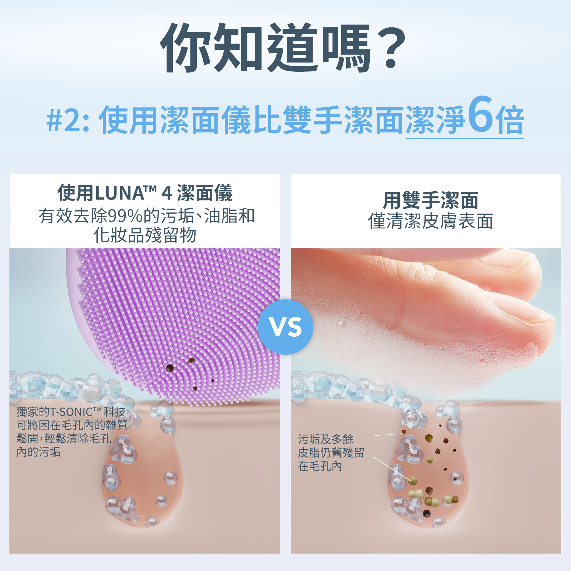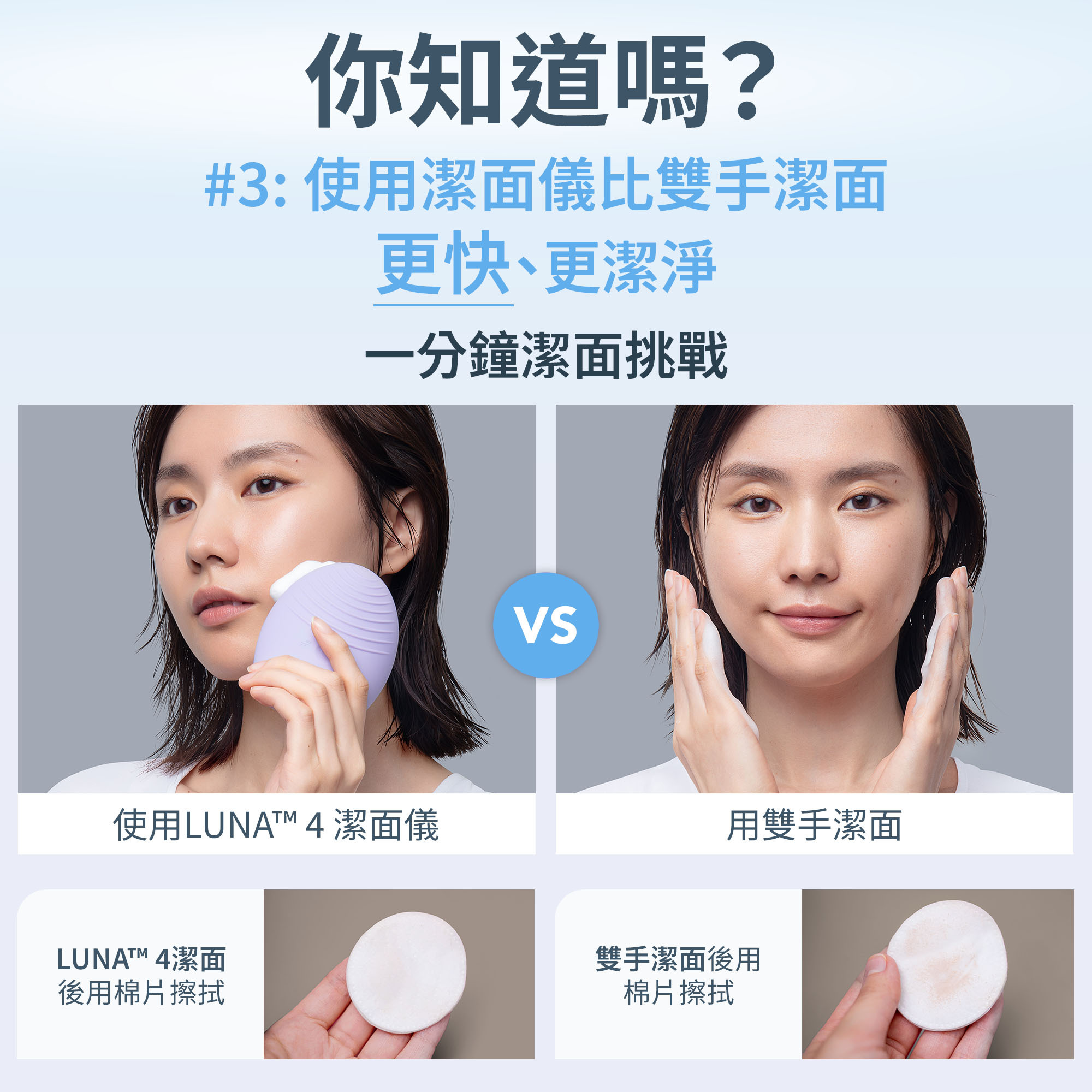 LUNA 4 採用柔軟親膚矽膠,較 LUNA 3 柔軟度17%,潔面體驗更加柔軟,不傷膚。