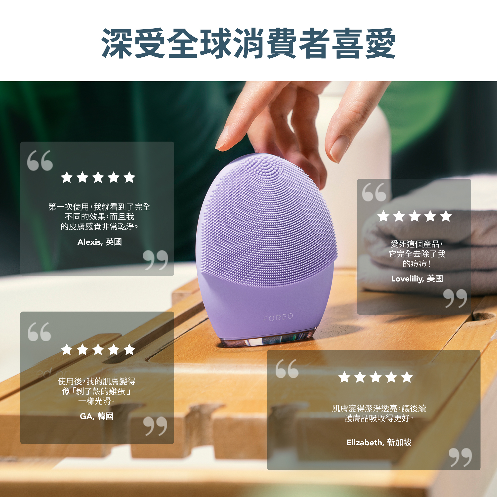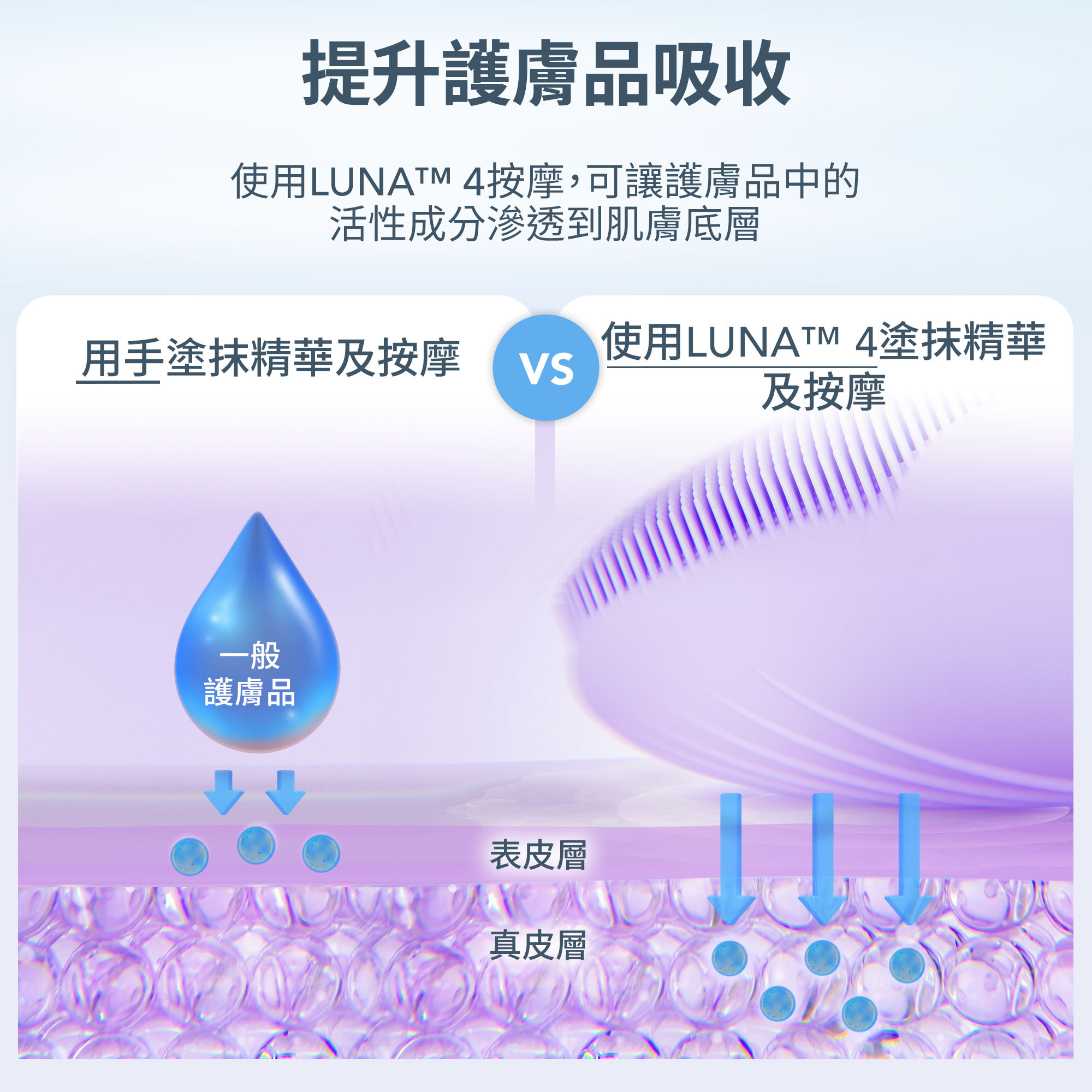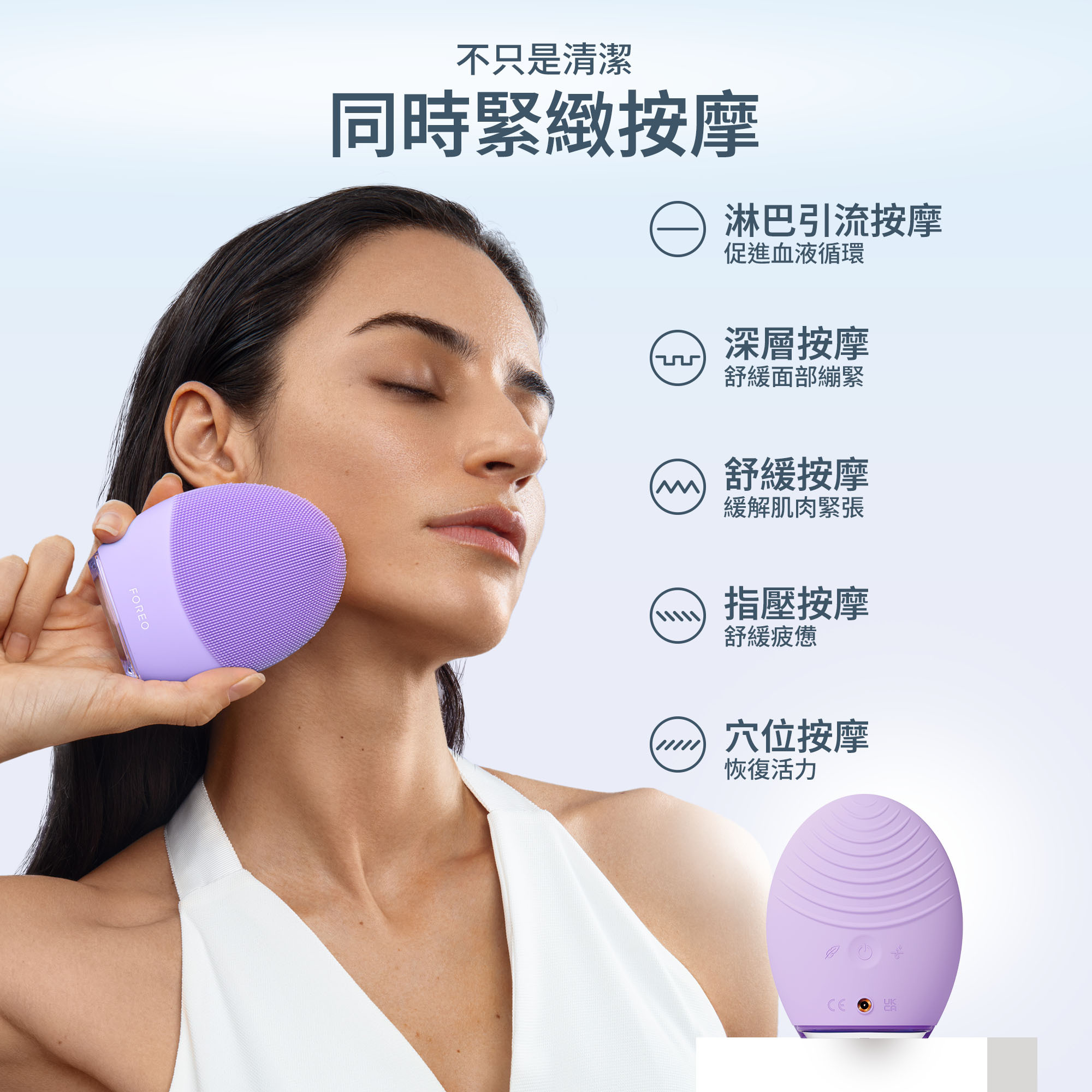 LUNA 4 採用柔軟親膚矽膠,較 LUNA 3 柔軟度17%,潔面體驗更加柔軟,不傷膚。