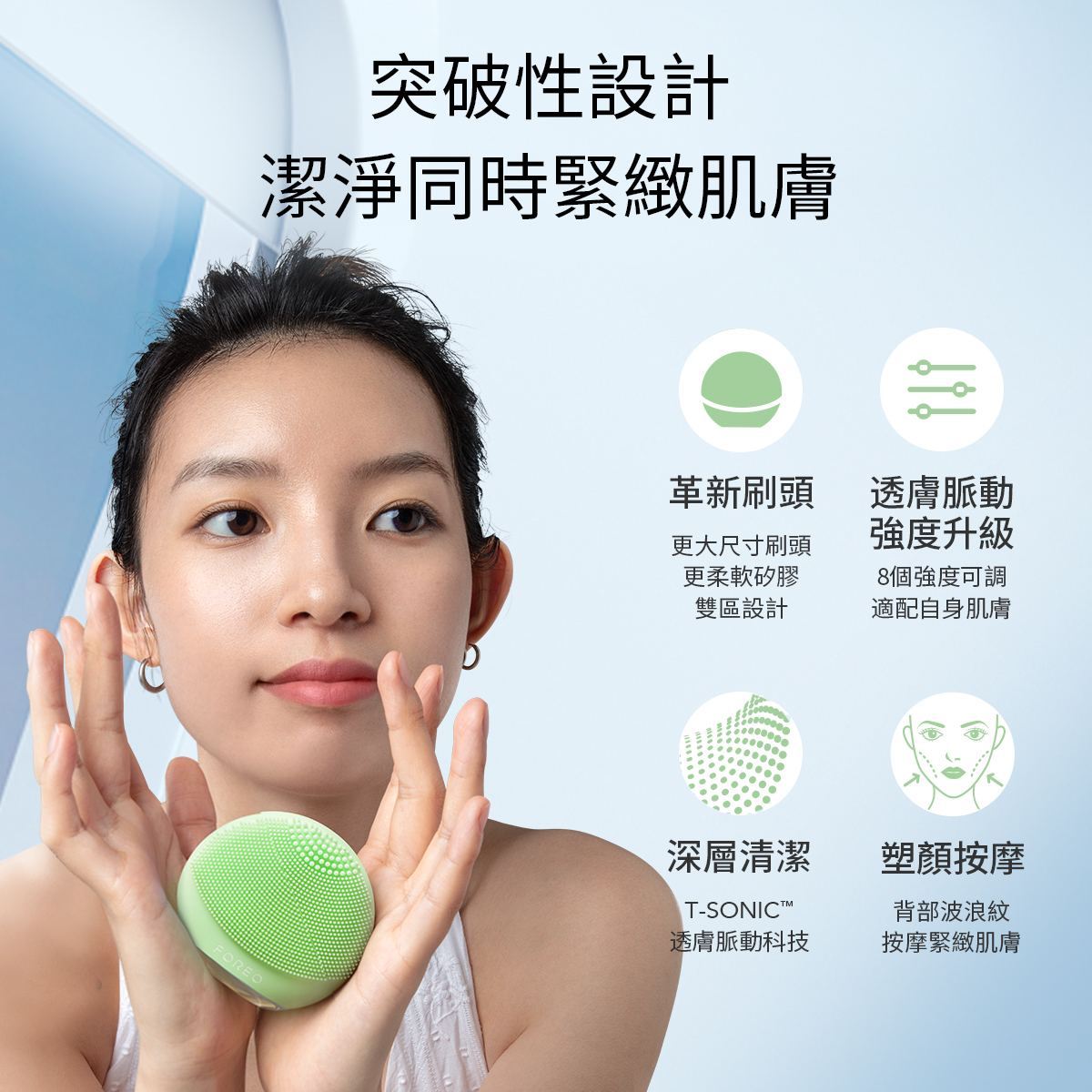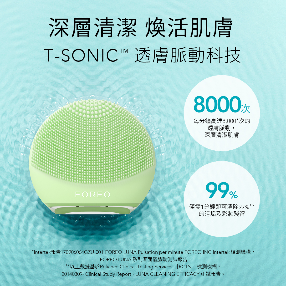 身形小巧,功能強大,清潔按摩兩不誤,每分鐘高達 8,000 次的T-SONIC垂直透膚聲波脈動,僅需 1 分鐘即可深入溫和清潔肌膚。