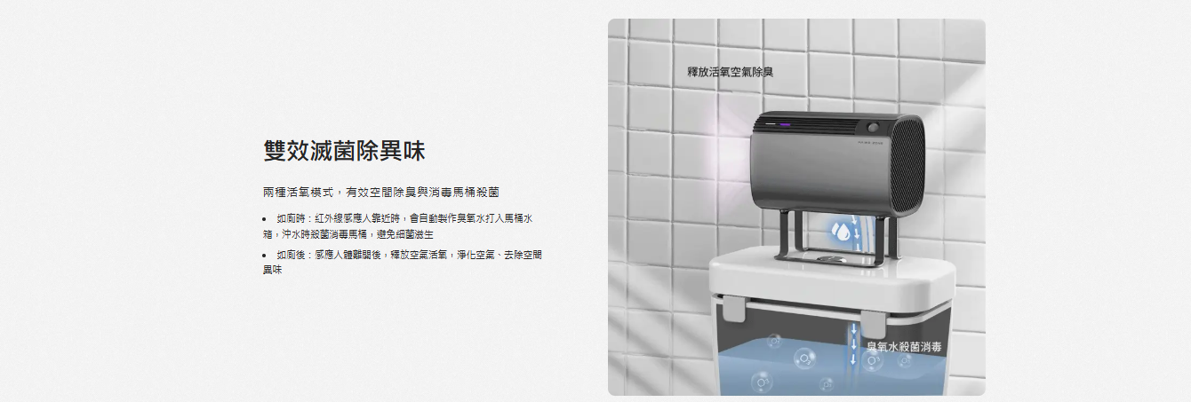 兩種活氧模式,有效空間除臭與消毒馬桶殺菌