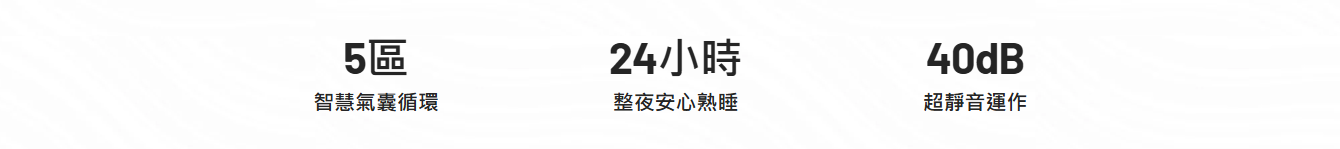 氣囊無論充氣或洩氣,整體運作聲音都低於一般寧靜環境標準,整夜安靜很好睡,不干擾睡眠,真正做到靜音守護。