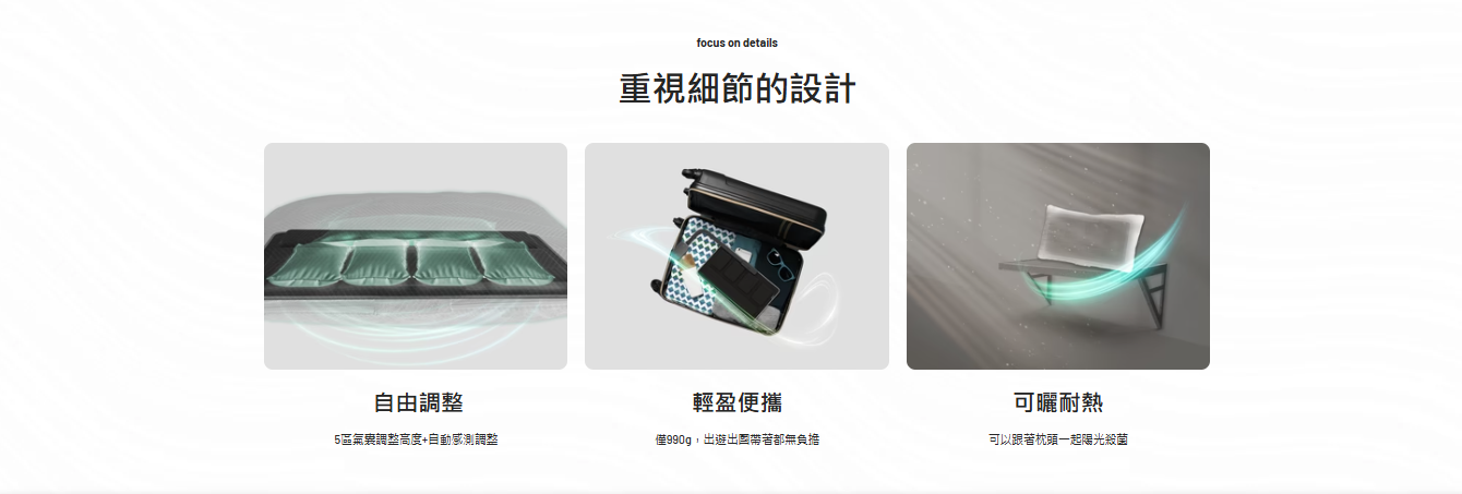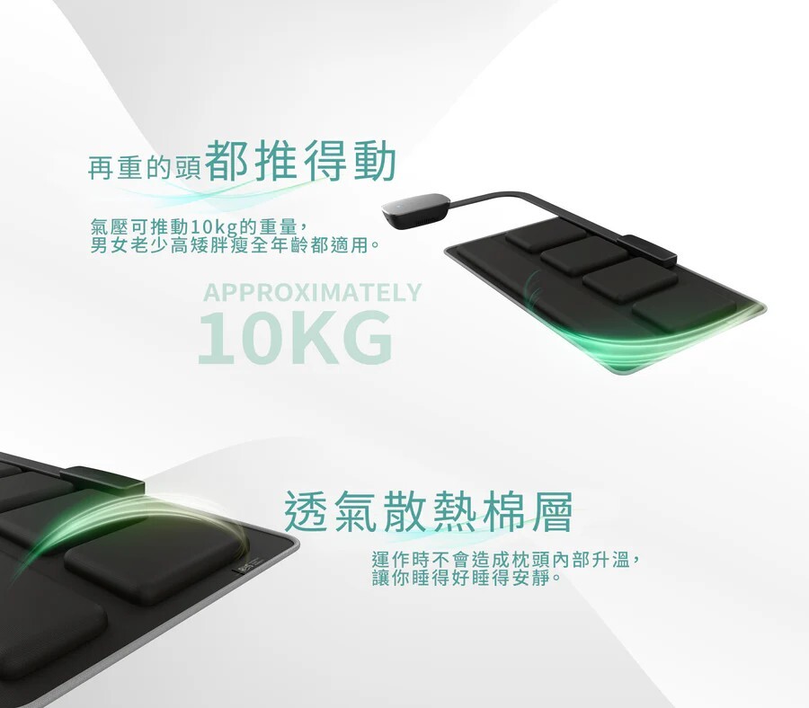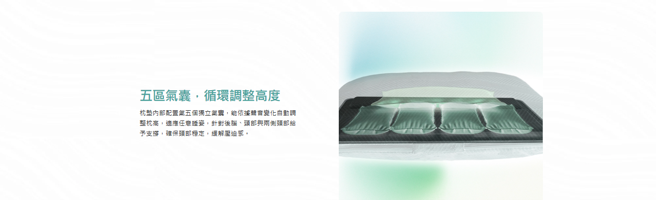 智能五區氣囊,自動調整枕高