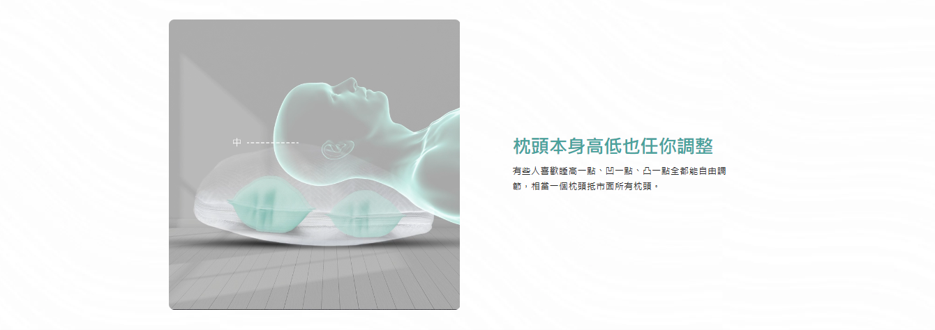 有些人喜歡睡高一點、凹一點、凸一點全都能自由調節,相當一個枕頭抵市面所有枕頭。