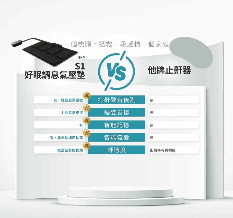 靈敏聲音傳感器結合鼾聲濾波算法,能即時偵測音頻與聲量,識別有規律的聲音波段,自動啟動氣囊運作。
