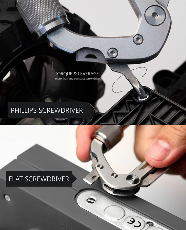 十字起子和螺絲起子當然是不必可少的功能,GPCA登山扣甚至有類似拔釘器的功能,拔出釘子時可以省下不少力氣。