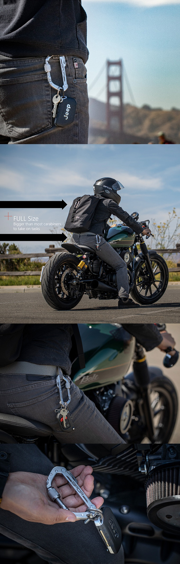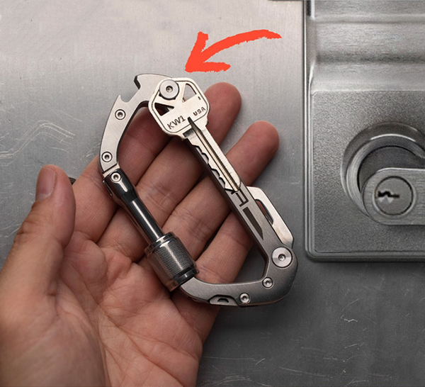 許多人常把登山扣用來將不同鑰匙串聯在一塊,這樣使用鑰匙時存取都極為方便,GPCA登山扣除了可以如此操作之外,還可以將鑰匙固定隱藏在登山扣一側,使用時直接旋轉出鑰匙,極為方便。