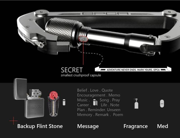 除此之外,GPCA登山扣內還擁有一個非常小的儲物空間,消費者可以將小零件、藥品、紙條捲起存放於此。