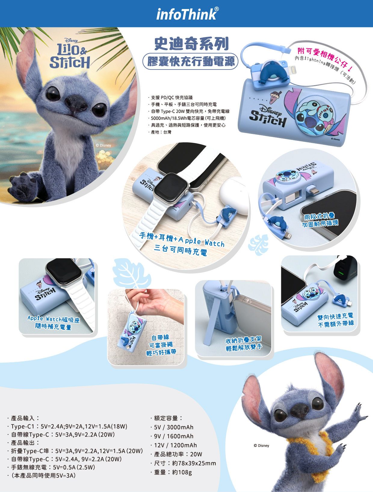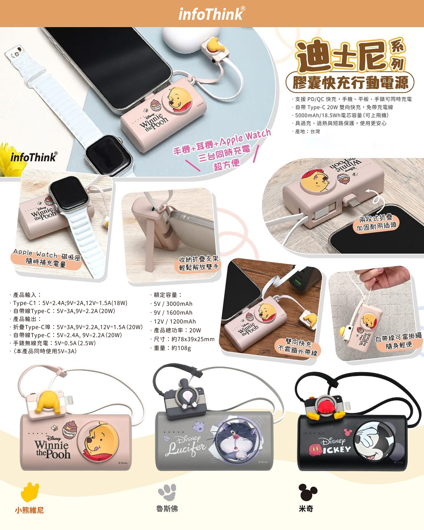 迪士尼系列多功能膠囊快充行動電源(四款可選)|InfoThink|搵好西