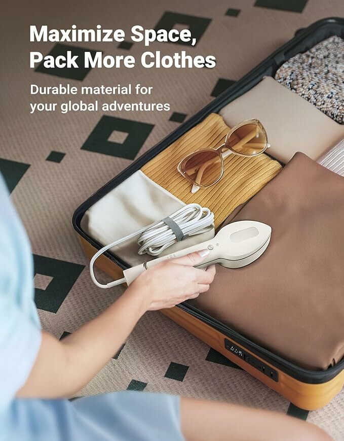 輕巧便攜,適合旅行:便攜式旅行蒸汽機,2.6 英吋(約 6.6 公分)纖薄機身可輕鬆放入行李隔層。