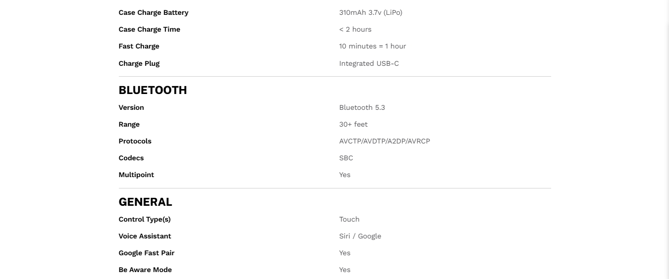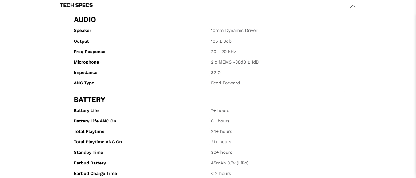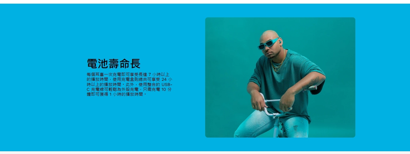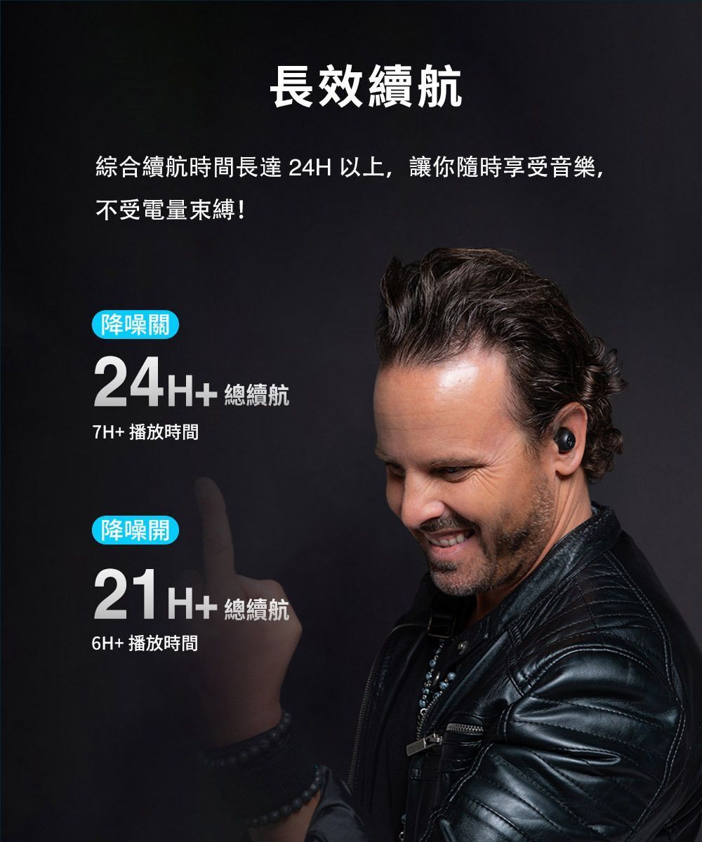 耳機電量:單耳7H+ / 搭充電盒24H+(降噪關閉)|單耳6H+ / 搭充電盒21H+(降噪開啟)
