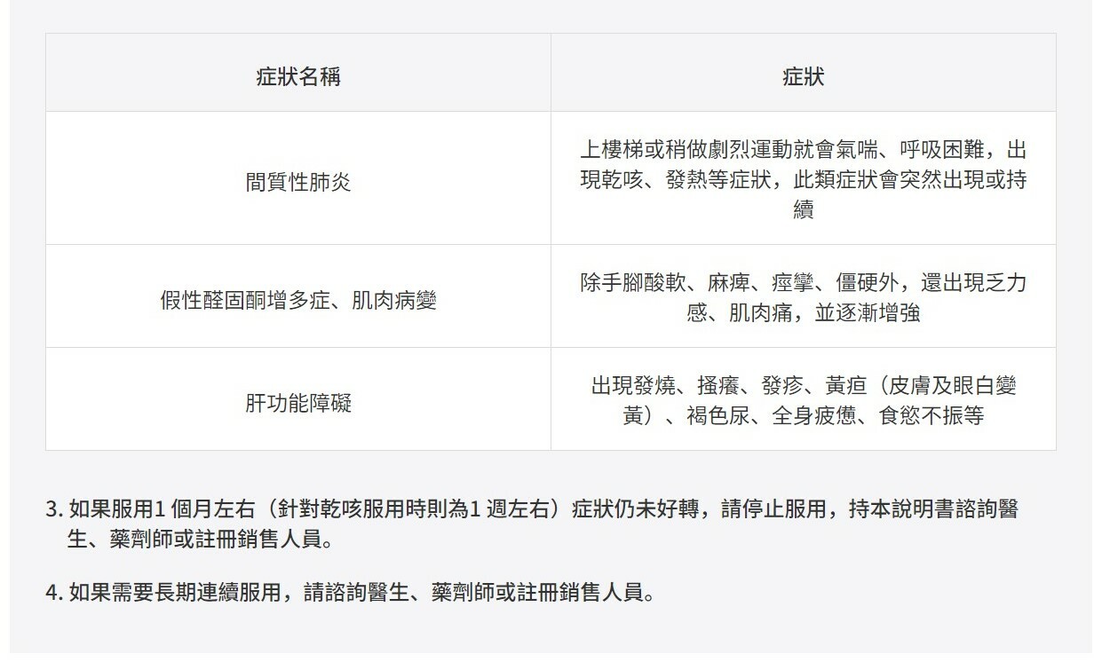 用於中等體力以下,不斷有痰,時有劇烈咳嗽,或咽部有乾燥感的人士的以下各種症狀:乾咳、支氣管炎、支氣管