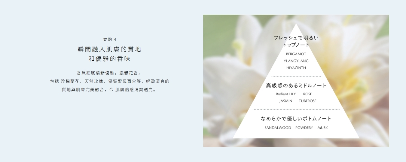 清新淡雅的花香調,提昇護膚過程為奢華的享受。