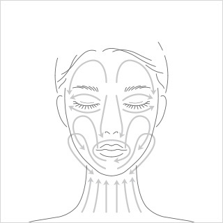 倒出約一半的精華素於掌心,以指尖輕輕按摩、塗勻臉部至頸部。