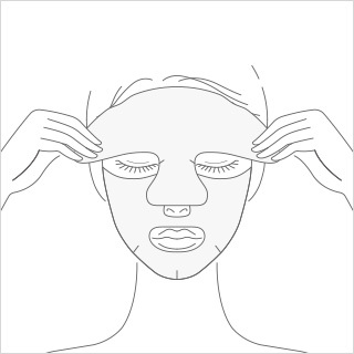 *箭咀部分對齊眼睛下方,微調位置使面膜貼服。