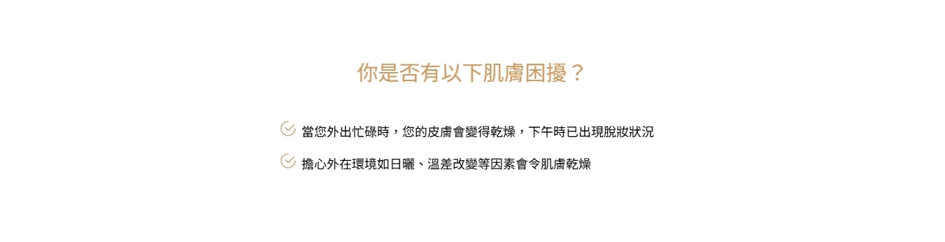 當您外出忙碌時,您的皮膚會變得乾燥,下午時已出現脫妝狀況