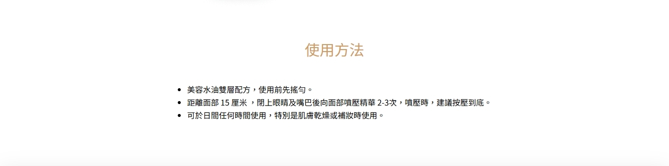 水油雙層配方,結合精華水和護膚油成分,
