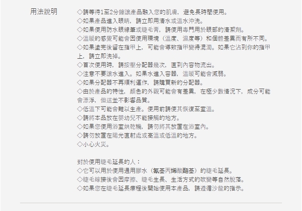 可卸除假睫毛:可用於使用通用膠水(氰基丙烯酸酯基)的睫毛卸除。